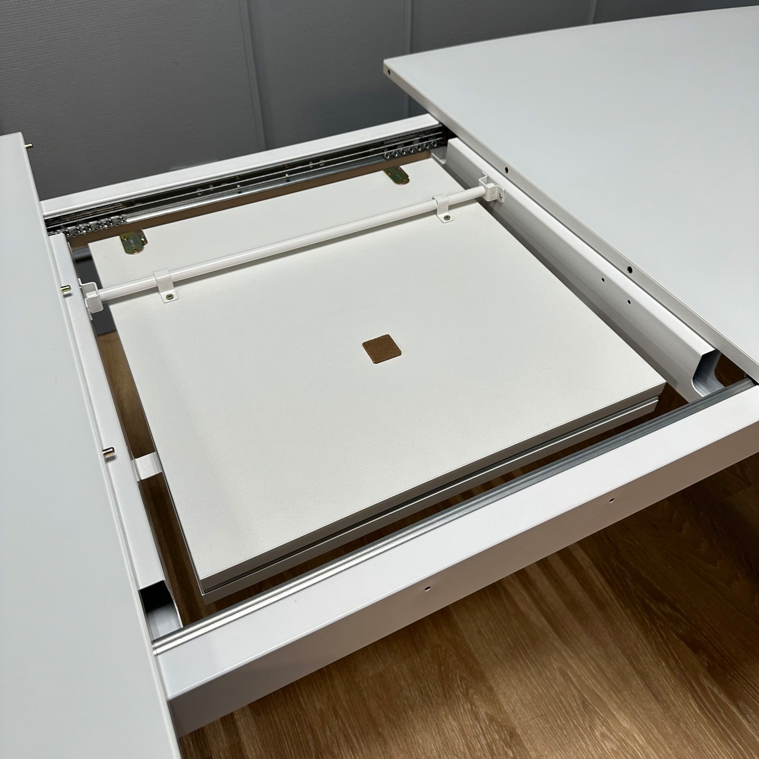 Механизм сделан очень аккуратно и полностью соотетствует цвету стола.