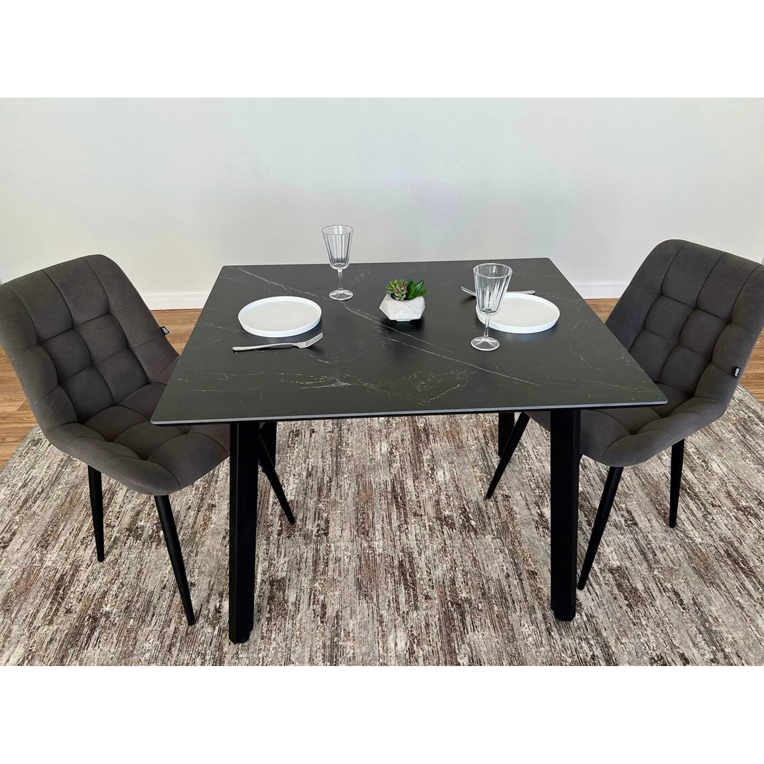 Стол со столешницей из керамогранита. Разборное стальное подстолье.