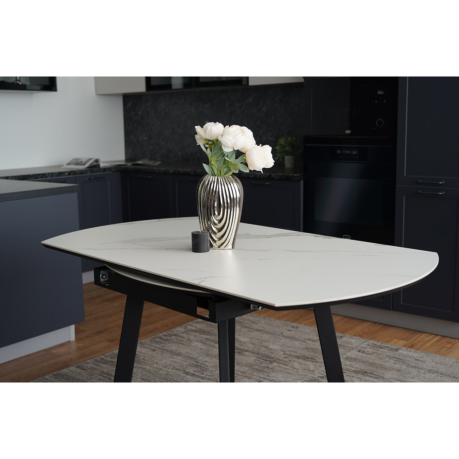 Стол из керамогранита и металла — это долговечно, стильно, современно.