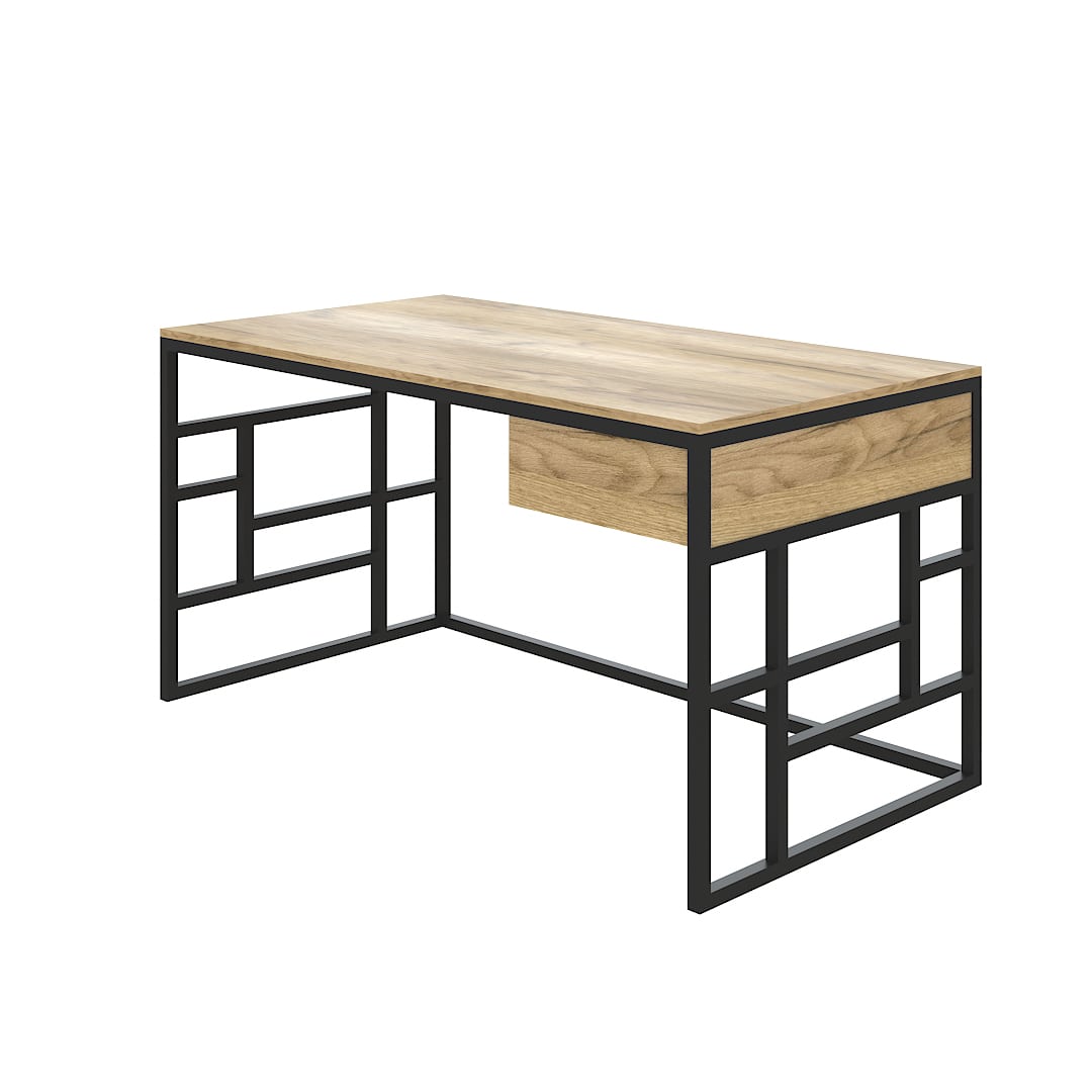 Каркас из проф. трубы 25х25 мм, покрытие черный муар, ЛДСП 16 мм дуб табачный.