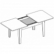 Стол раздвижной B OLIVIA. Стол раздвижной B OLIVIA отличается от стола раздвижного OLIVIA большей шириной и глубиной. Конструкция элемента представляет собой столешницу из двух частей прямоугольной формы, под столешницей имеется отсек для хранения дополнительной детали, которая при необходимости вставляется между двумя частями столешницы для увеличения обеденного пространства. Расположение угловых ножек (4 шт.) даёт возможность удобно разместить стулья возле стола.