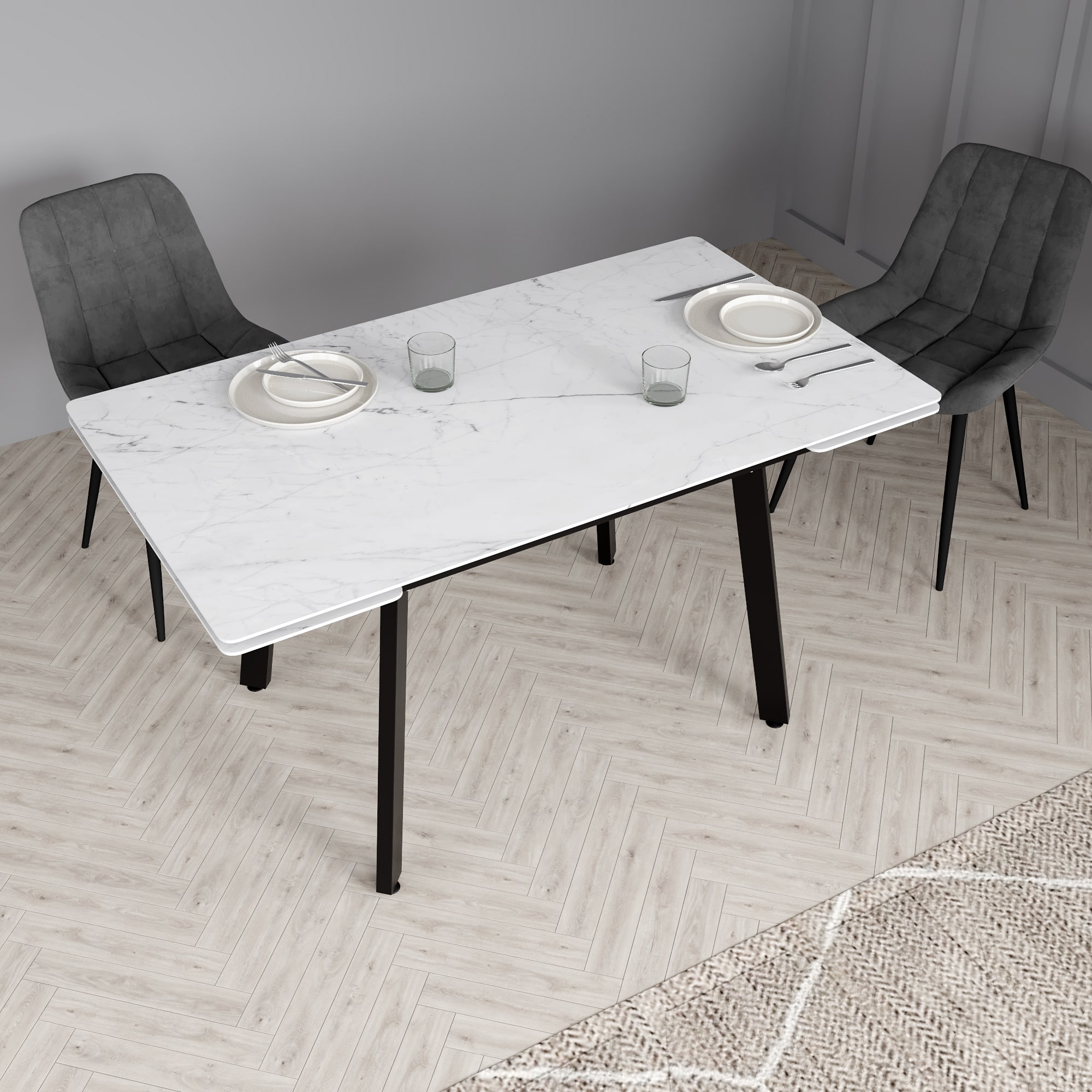 Стол обеденный стеклянный Лорд Мрамор белый