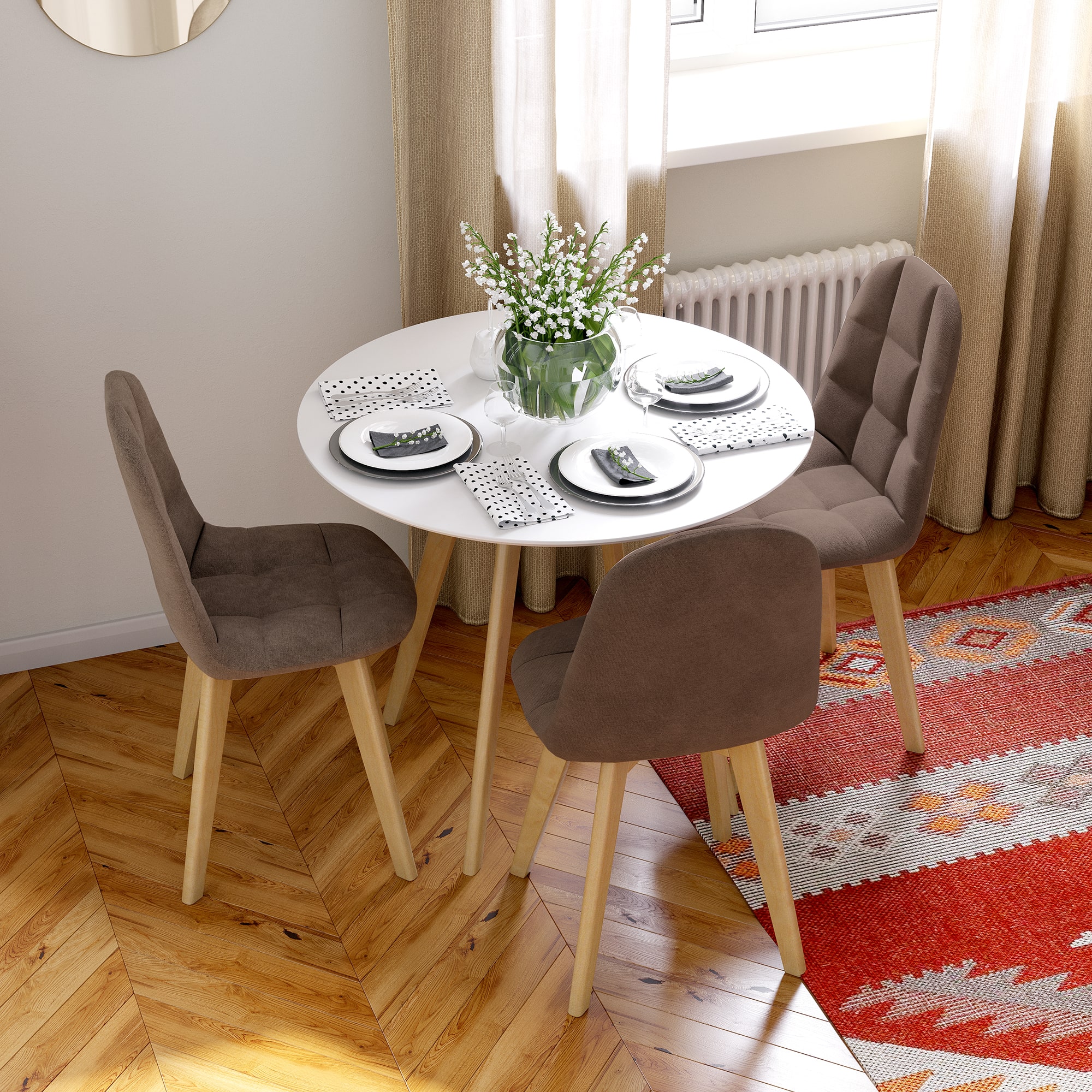 Обеденный стол “Вивальди” выполнен в классическом стиле и имеет белый матовый цвет столешницы. Круглая форма делает его идеальным для размещения в центре комнаты и обеспечивает комфорт для всех гостей. Опоры из массива березы, покрытые прозрачным лаком, придают столу воздушности и элегантности.