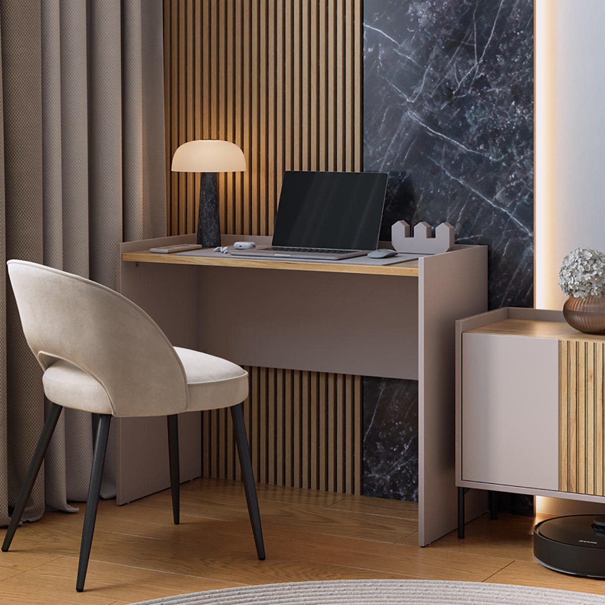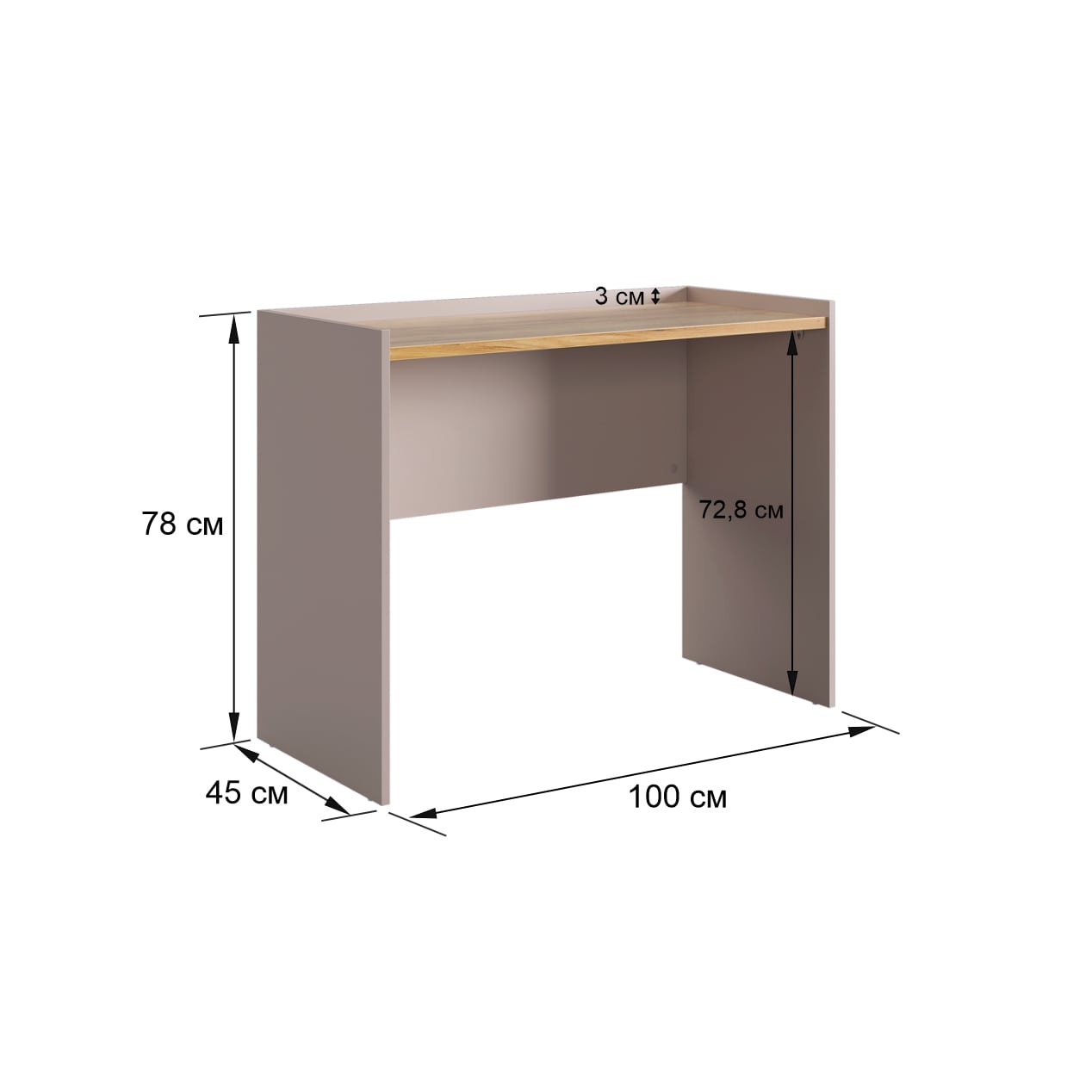 Корпус стола выполнен в цвете кашемир, что придает ему современный и спокойный вид, легко сочетающийся с любым интерьером. Столешница изготовлена из высококачественного материала цвета дуб крафт золотой с толщиной 22 мм, что обеспечивает прочность и устойчивость к повреждениям. Этот цвет добавляет столу теплоту и роскошь, создавая приятное ощущение при работе или учебе.