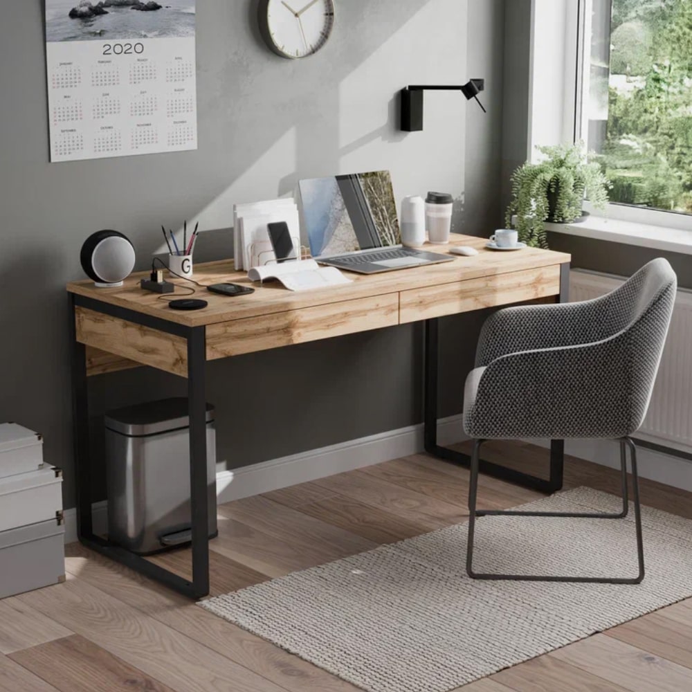 Стол письменный лофт DQ MADRID М-2 Черный/Дуб табачный