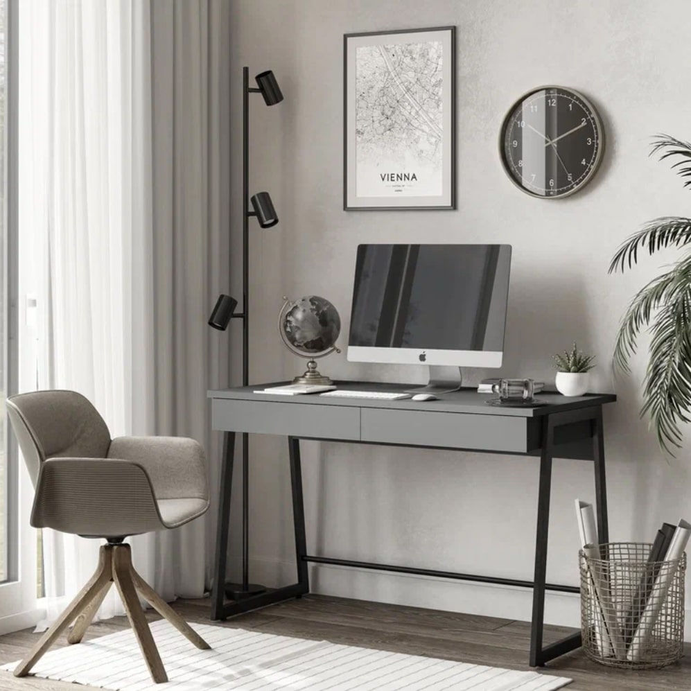 Каркас из проф. трубы 40х20 мм, покрытие черный муар, ЛДСП 16 мм серый графит, кромка серый графит.