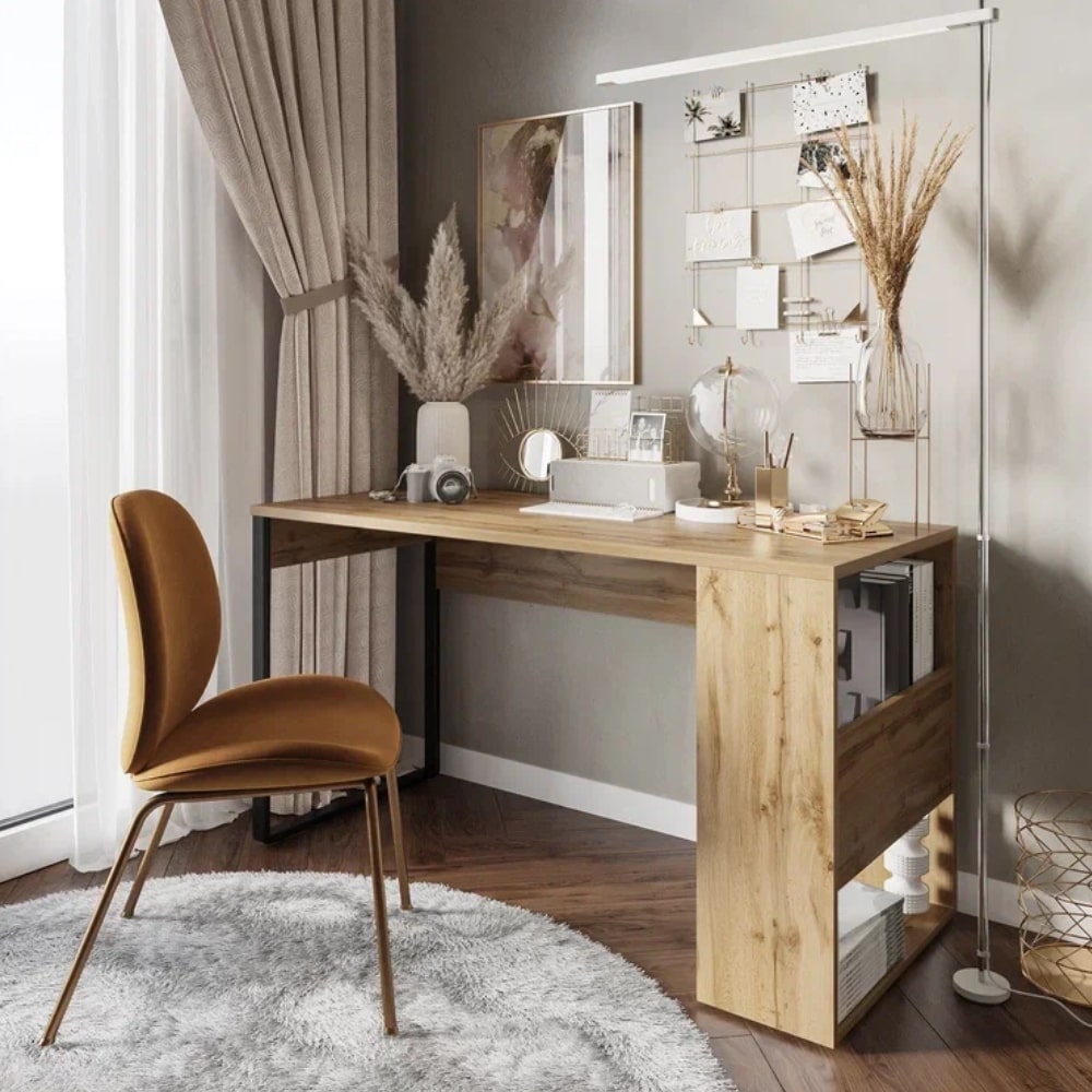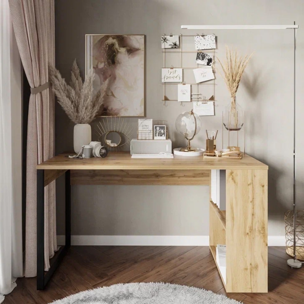 Каркас из проф. трубы 40х20 мм, покрытие черный муар, ЛДСП 16 мм дуб табачный, кромка дуб табачный.