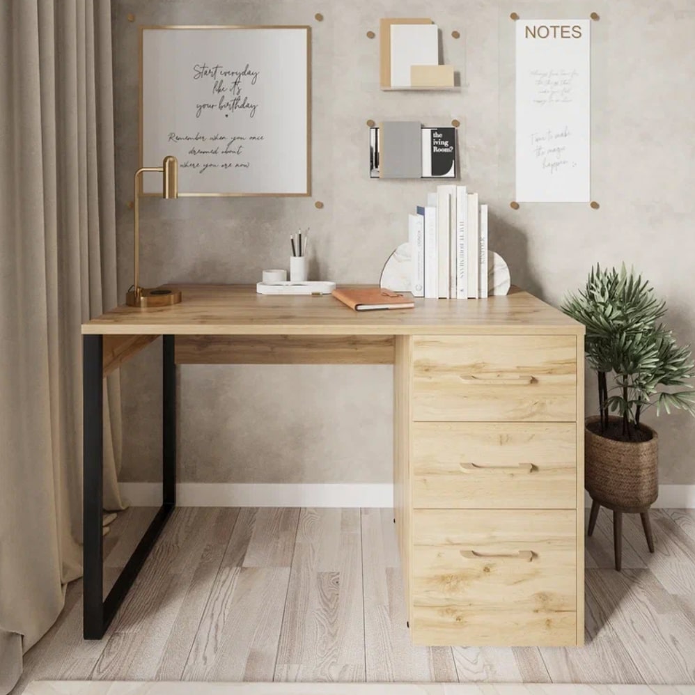 Каркас из проф. трубы 40х20 мм, покрытие черный муар, ЛДСП 16 мм дуб табачный, кромка дуб табачный.