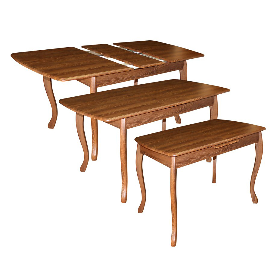 Стол с автоматическим выдвижением вставки при раздвижении стола. Материал изготовления: МДФ Размеры: 1330(1630)х860х750 мм.
