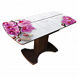 Стол однотумбовый, со стеклянной поверхностью, закаленное стекло,раздвижной. Вставка - стекло с фотопечатью (продолжение рисунка). Основа-ЛДСП. Ножка- МДФ.
