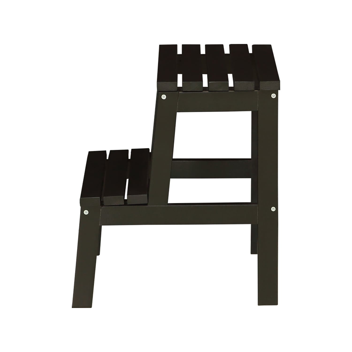 Стремянка оснащена двумя ступенями, что обеспечивает удобство и безопасность при использовании. Ширина ступени составляет 45 см, что позволяет комфортно разместить ноги и обеспечивает устойчивость.