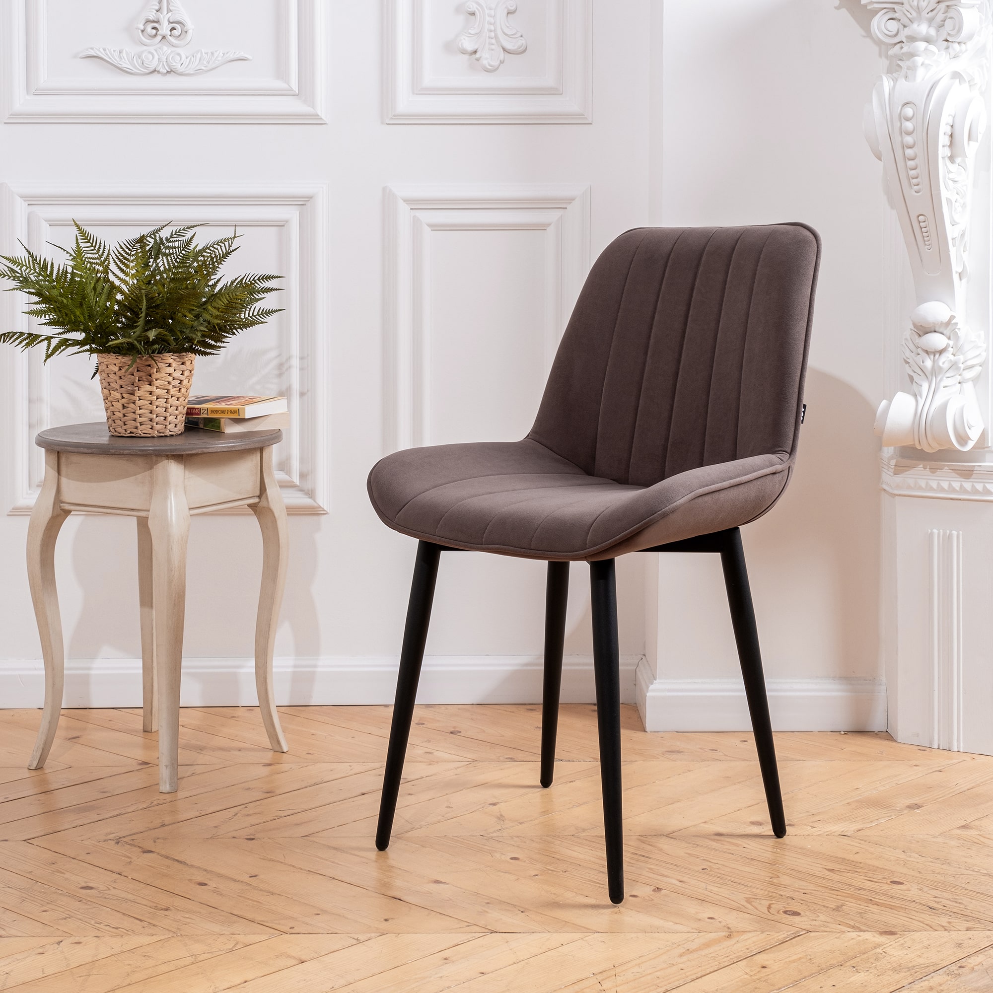 Обивка из высококачественного велюра придает стулу не только изысканный вид, но и обеспечивает непревзойденный комфорт. Мягкий на ощупь материал создает удивительные ощущения и приносит настоящее удовольствие от использования.