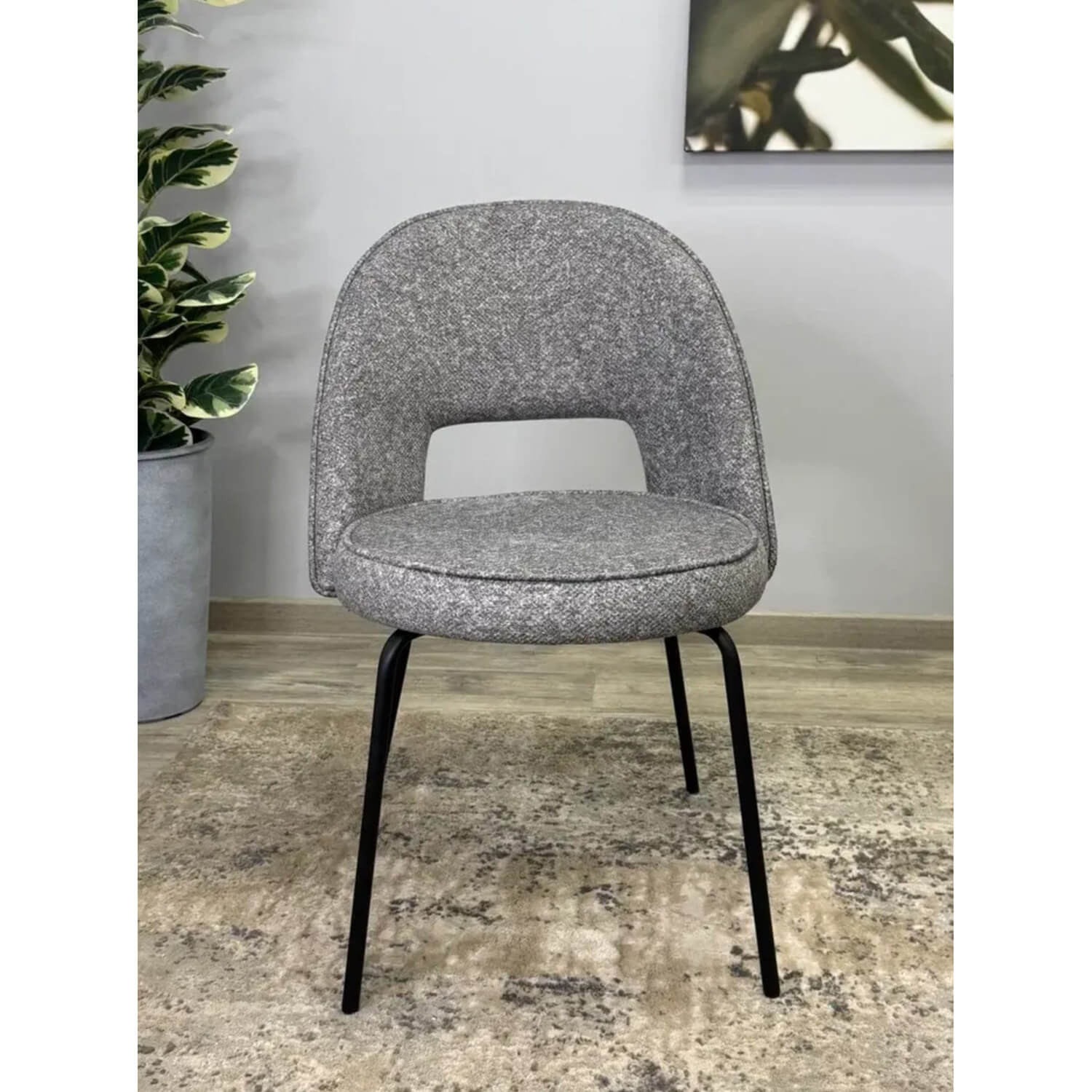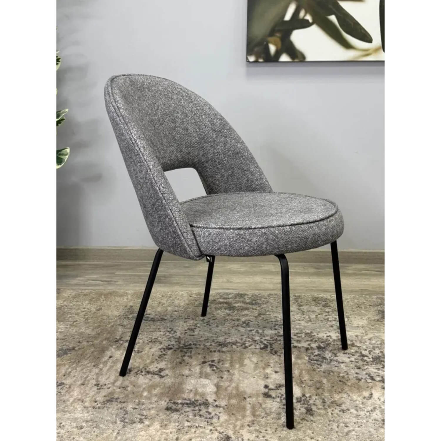 Стильный стул с утолщенным сиденьем обеспечивает такой же уют, как и любимый диван. Прочная основа изделия способна выдержать вес до 190 кг. Материал устойчив к загрязнениям и неприятным запахам, а также легко поддается чистке. Благодаря этим свойствам тканевая обивка остается привлекательной даже при наличии домашних животных.