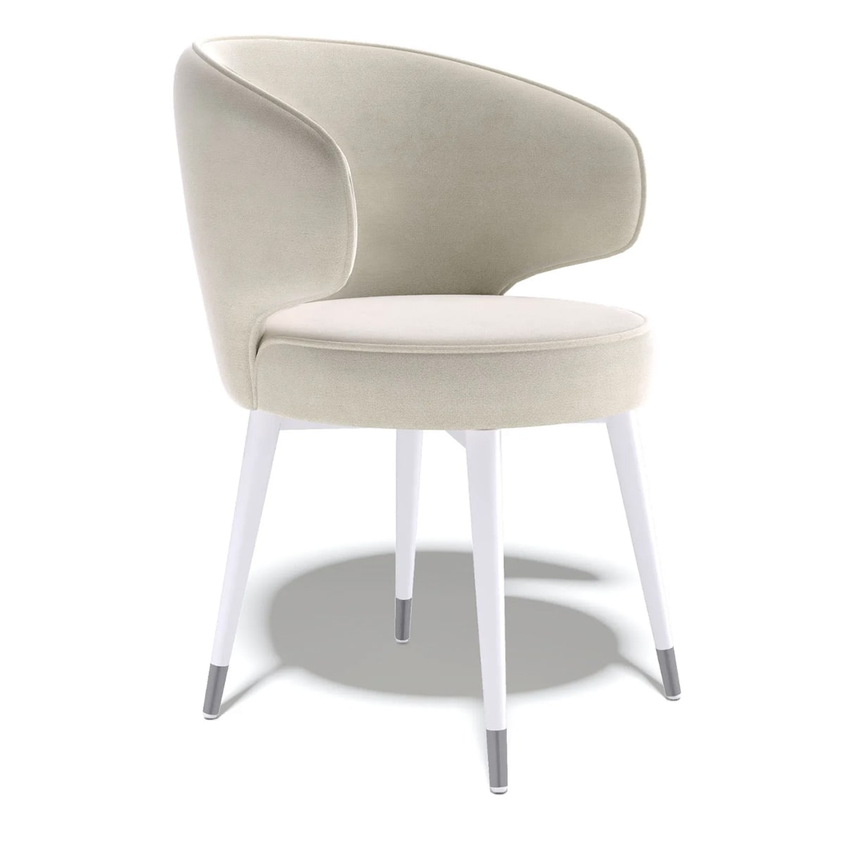 Дизайнерский стул на поворотном механизме с премиальной мягкостью, сверхустойчивой тканью 5 категории и красивыми опорами с колпачками на концах.