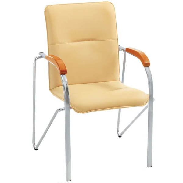 Классический стул для офиса повышенной комфортности. Спинка и сиденье имеют строгие прямые линии, что позволяет ощущать комфорт даже при длительном сидении. Стул имеет удобные подлокотники, плавно переходящие в стильные ножки.