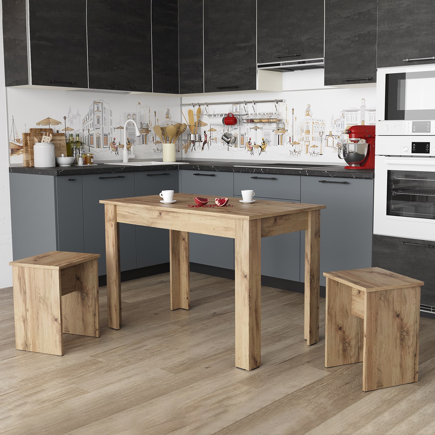 Табуреты выполнены из качественного ЛДСП, что обеспечивает их долговечность и устойчивость к износу.