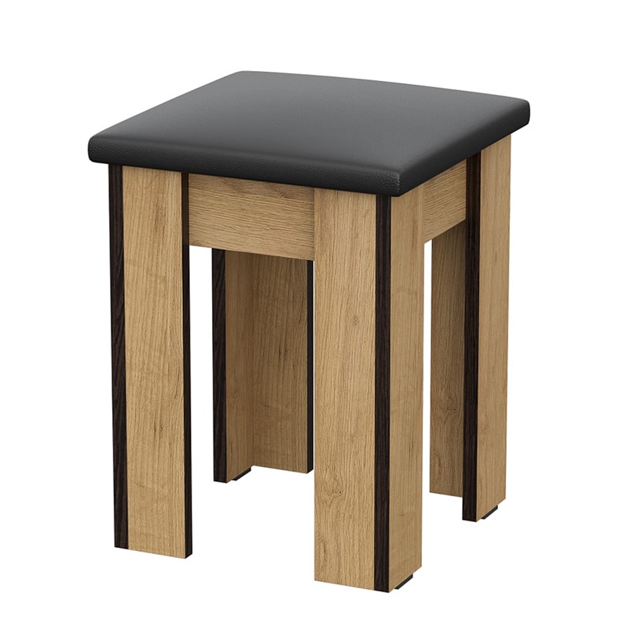 Недорогой компактный табурет №1 с каркасом из ЛДСП и сиденьем, обитым экокожей. Экокожа «Черный»
