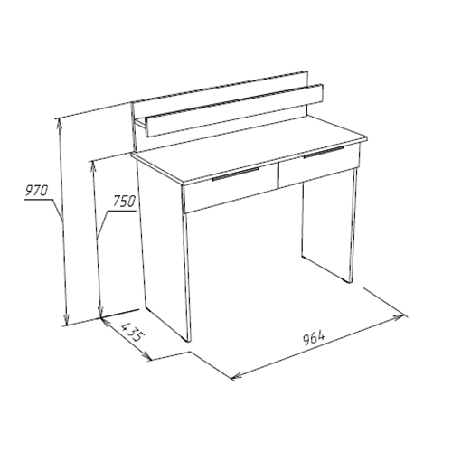 Туалетный столик оснащен ящиком, а также полкой для удобного хранения косметики, украшений и других аксессуаров.