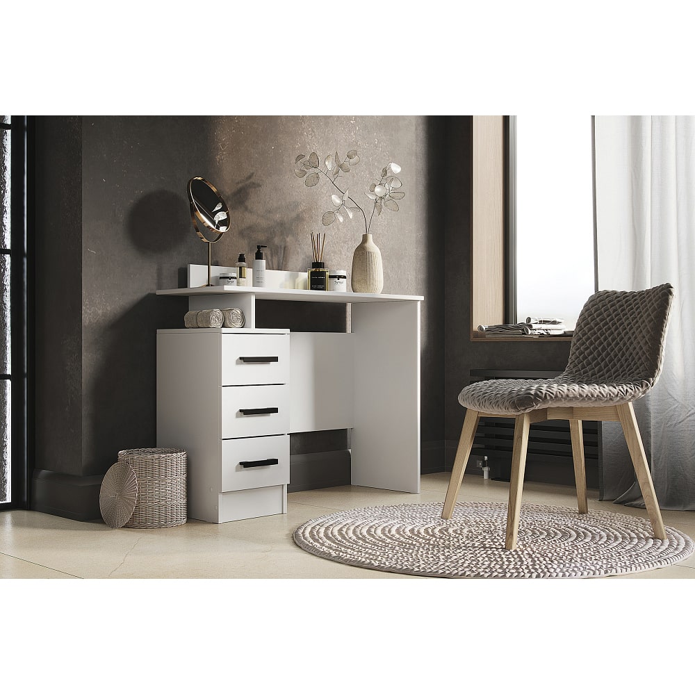 Туалетный столик оснащен тремя ящиками, что позволяет удобно хранить косметику, украшения и другие аксессуары. Высота столика составляет 78 см, ширина - 100 см, а длина - 39 см.
