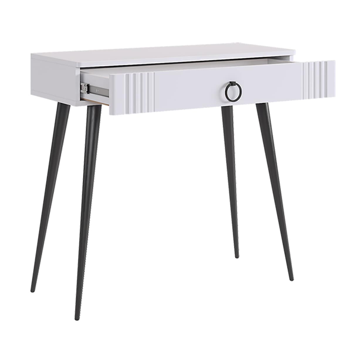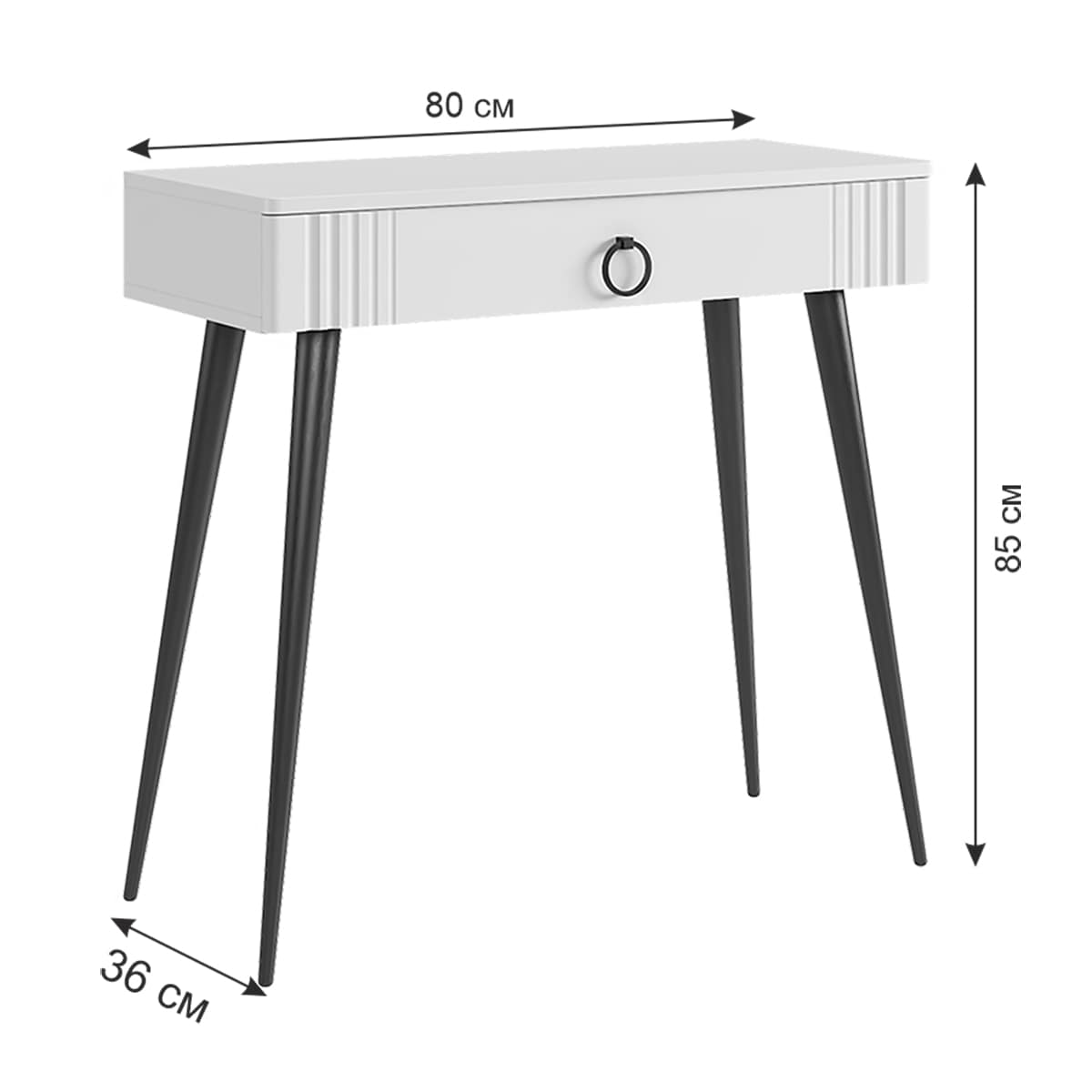 Туалетный столик "Ева 2" – это элегантное и функциональное решение для вашей спальни. Шариковые направляющие на ящике обеспечивают плавное открывание и закрывание. Устойчивые черные опоры добавляют стиля столику.