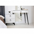 Цветовое сочетание белого корпуса из ЛДСП и фасада из МДФ облицованного пленкой ПВХ создает свежий и модный образ мебели. Необычная фрезеровка фасада добавляет изысканности и утонченности этому туалетному столику.