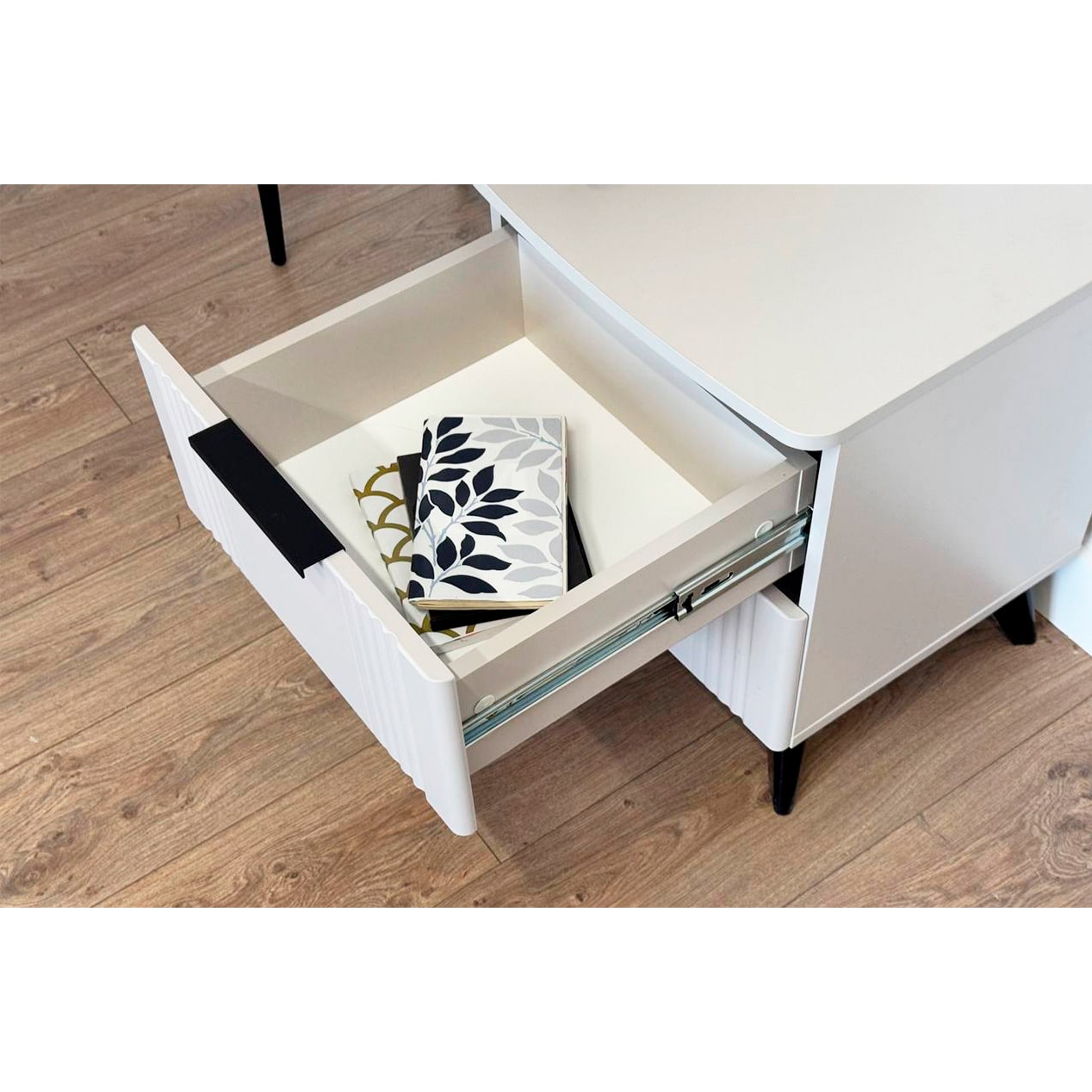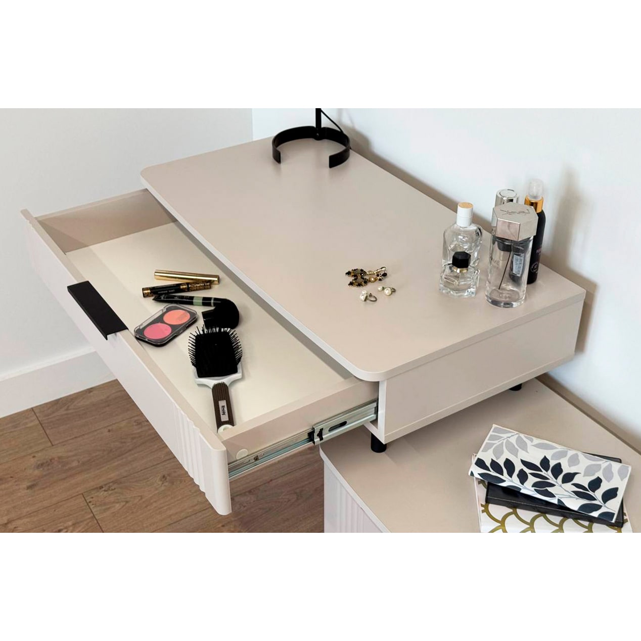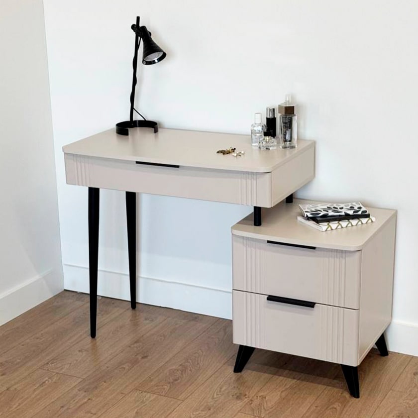Туалетный столик «Катрин М» станет стильным дополнением к вашей спальне и предоставит удобное место для хранения вещей, а также может использоваться как письменный стол.