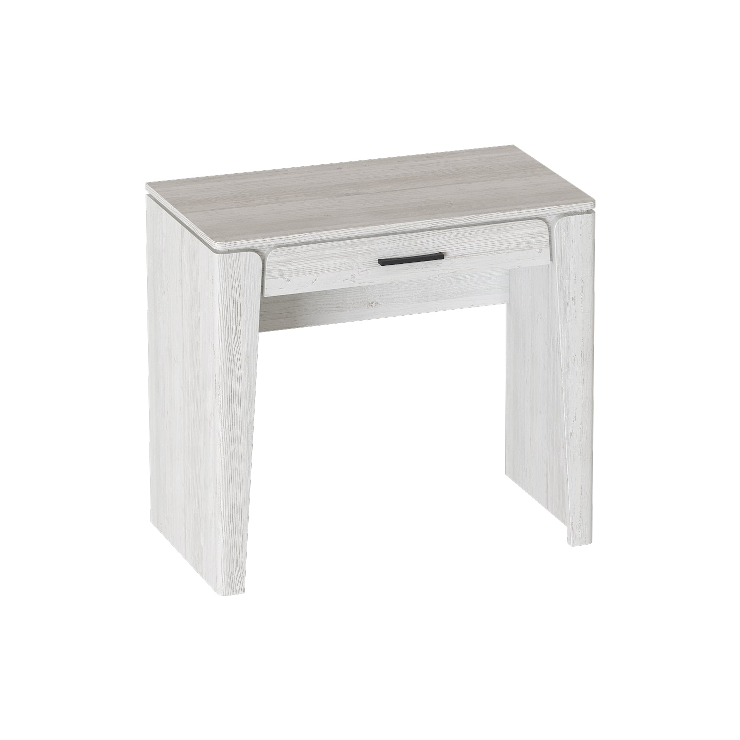 Корпус сделан из ЛДСП, а фасад украшен изящными округлыми элементами из МДФ. Выдвижной ящик обеспечивает дополнительное пространство для хранения.