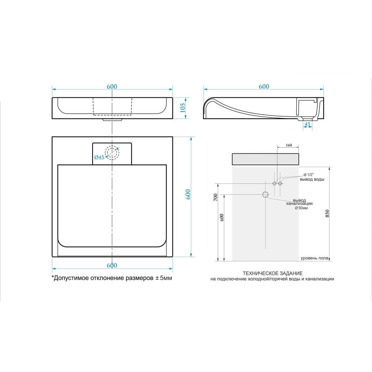 Раковина устанавливается на кронштейны над стиральной машиной (нельзя монтировать на столешницу стиральной машины).