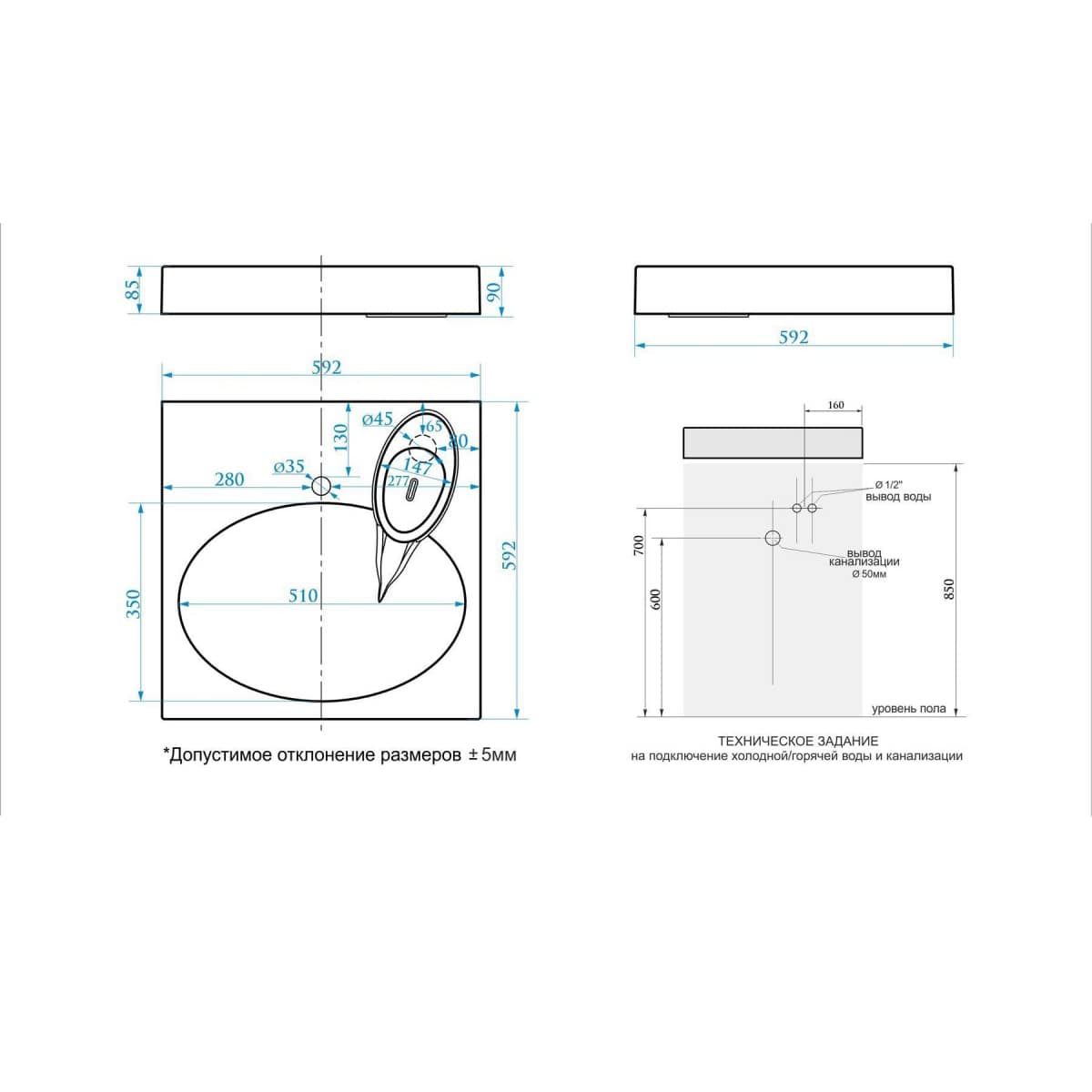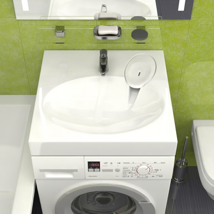 Раковина устанавливается на кронштейны над стиральной машиной (нельзя монтировать на столешницу стиральной машины).