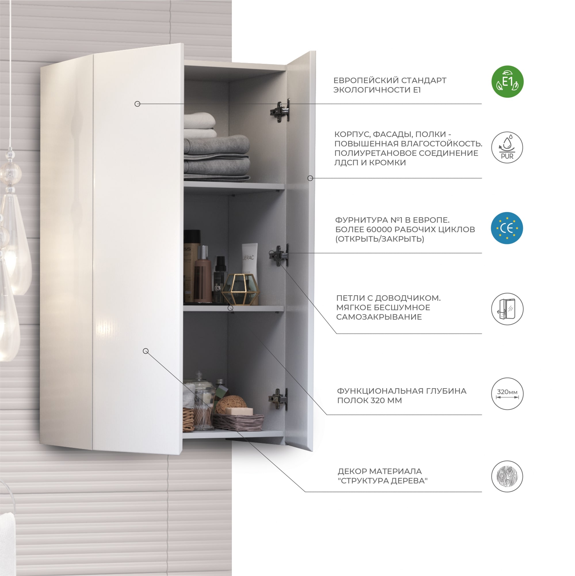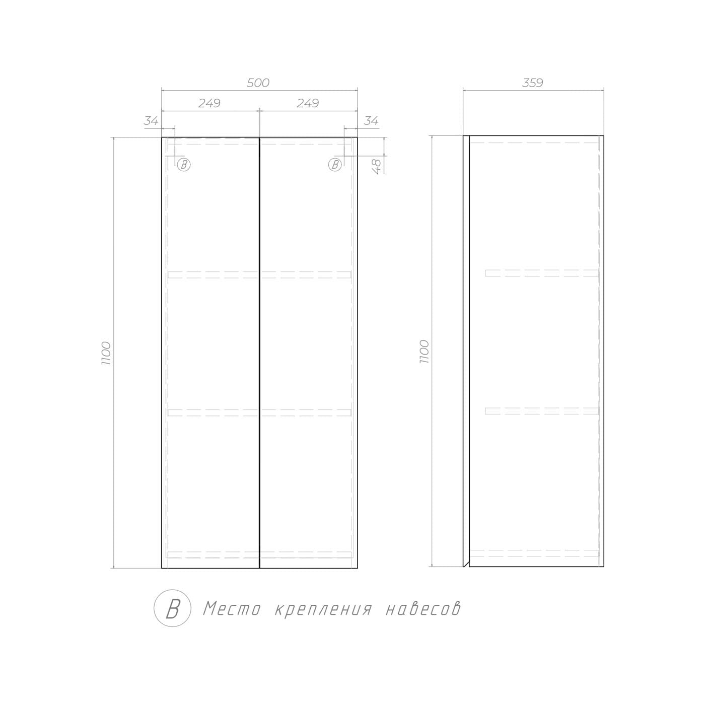 Оснащение: 2 дверцы; 2 полки ЛДСП; интегрированная ручка, 2 навеса.