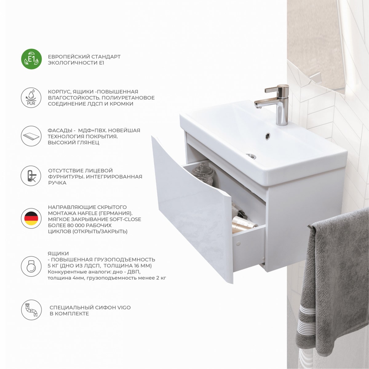 Материал корпуса: влагостойкий ЛДСП