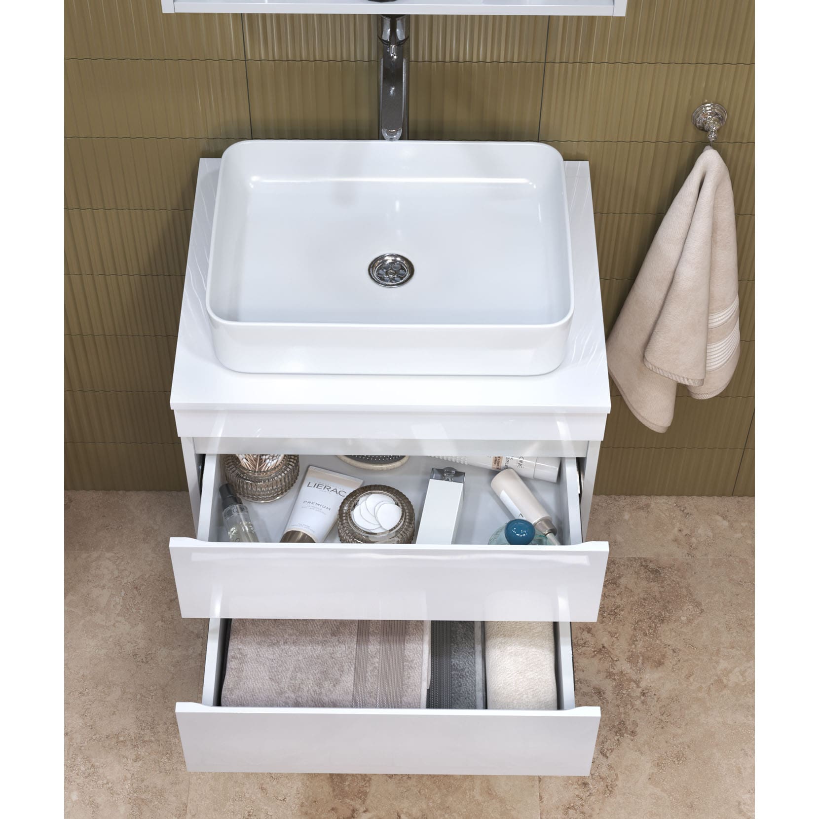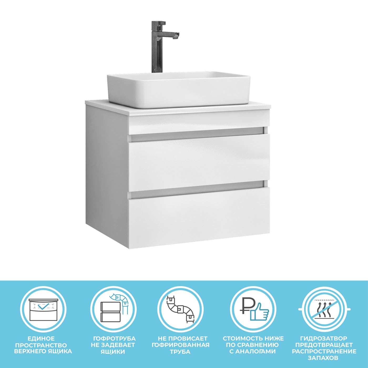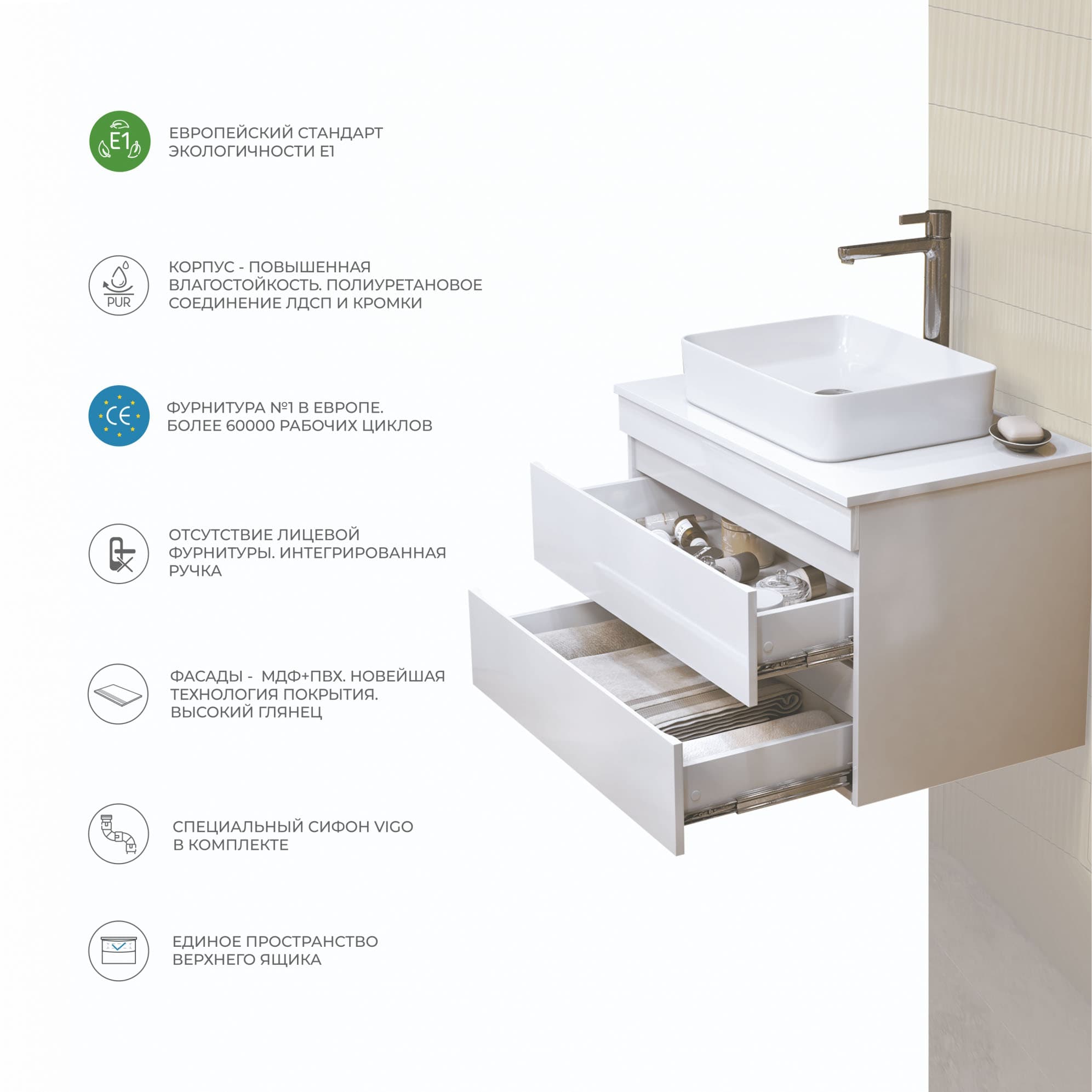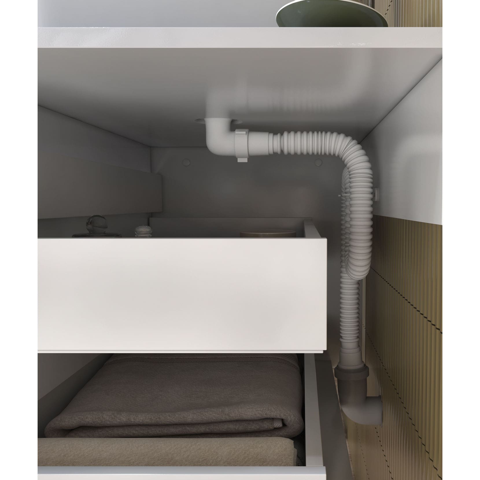 Оснащение: 2 ящика, шариковые направляющие полного выдвижения, 1 столешница с вырезом под сифон, 2 навеса, 1 сифон.