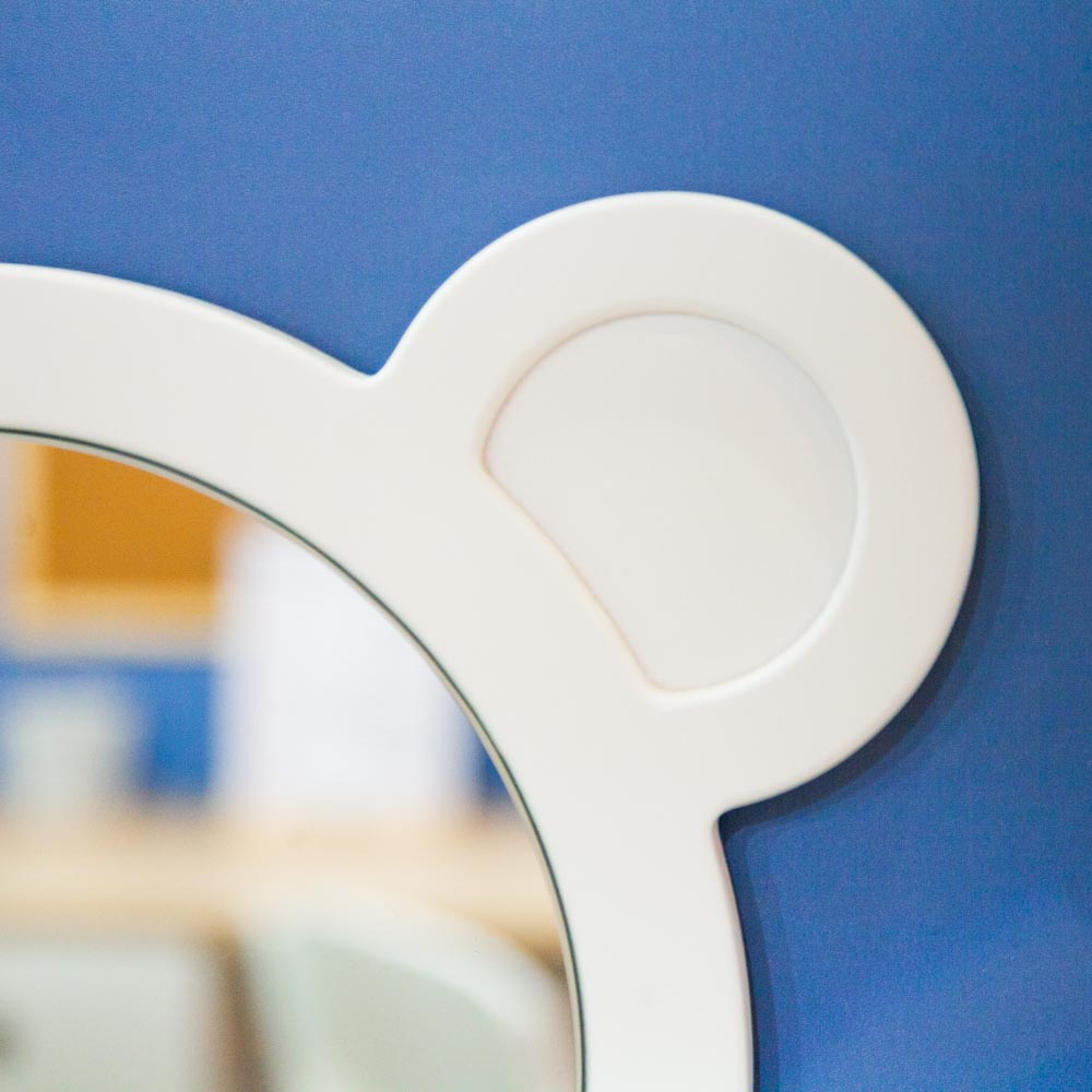 Белое зеркало в форме мишки добавит уюта и станет прекрасным украшением интерьера детской комнаты.
