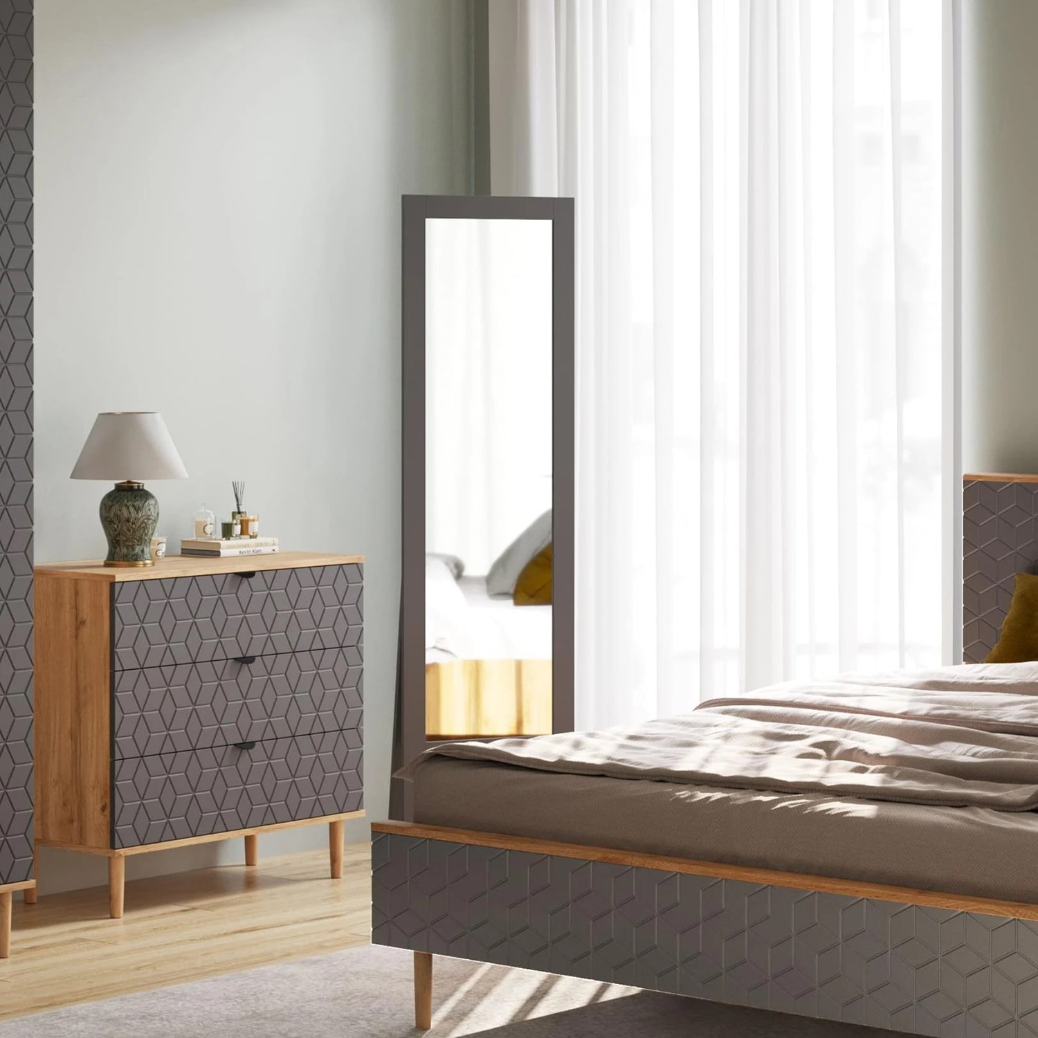 Это зеркало сочетает в себе простоту и изящество. Его вертикальная прямоугольная форма и тёплая древесная текстура создают идеальное сочетание, которое мгновенно преображает интерьер. Благодаря этому стильному предмету даже самая простая и практичная спальня или гостиная станет современной и привлекательной. При необходимости зеркало легко складывается, что делает его удобным для использования.