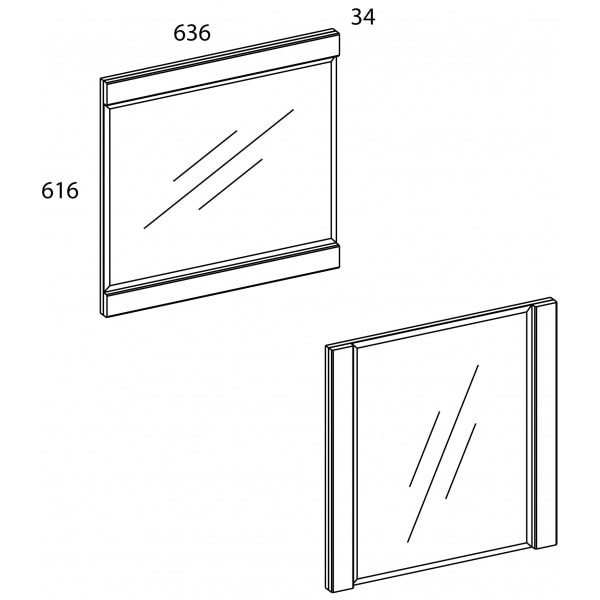 Зеркало навесное JAGGER преумножит освещённость помещения, а также станет прекрасным акцентом дизайна гостиной или спальни. Конструкция элемента представляет собой панель из ЛДСП, на которую крепится зеркало и планки в чёрном цвете.
