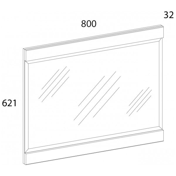 Зеркало навесное отличается от зеркала навесного B шириной и высотой. Зеркало навесное имеет прямоугольную форму, обрамлено планками сверху и снизу. Конструкция элемента представляет собой панель из ЛДСП, на которую крепится зеркало, планки из ЛДСП.
