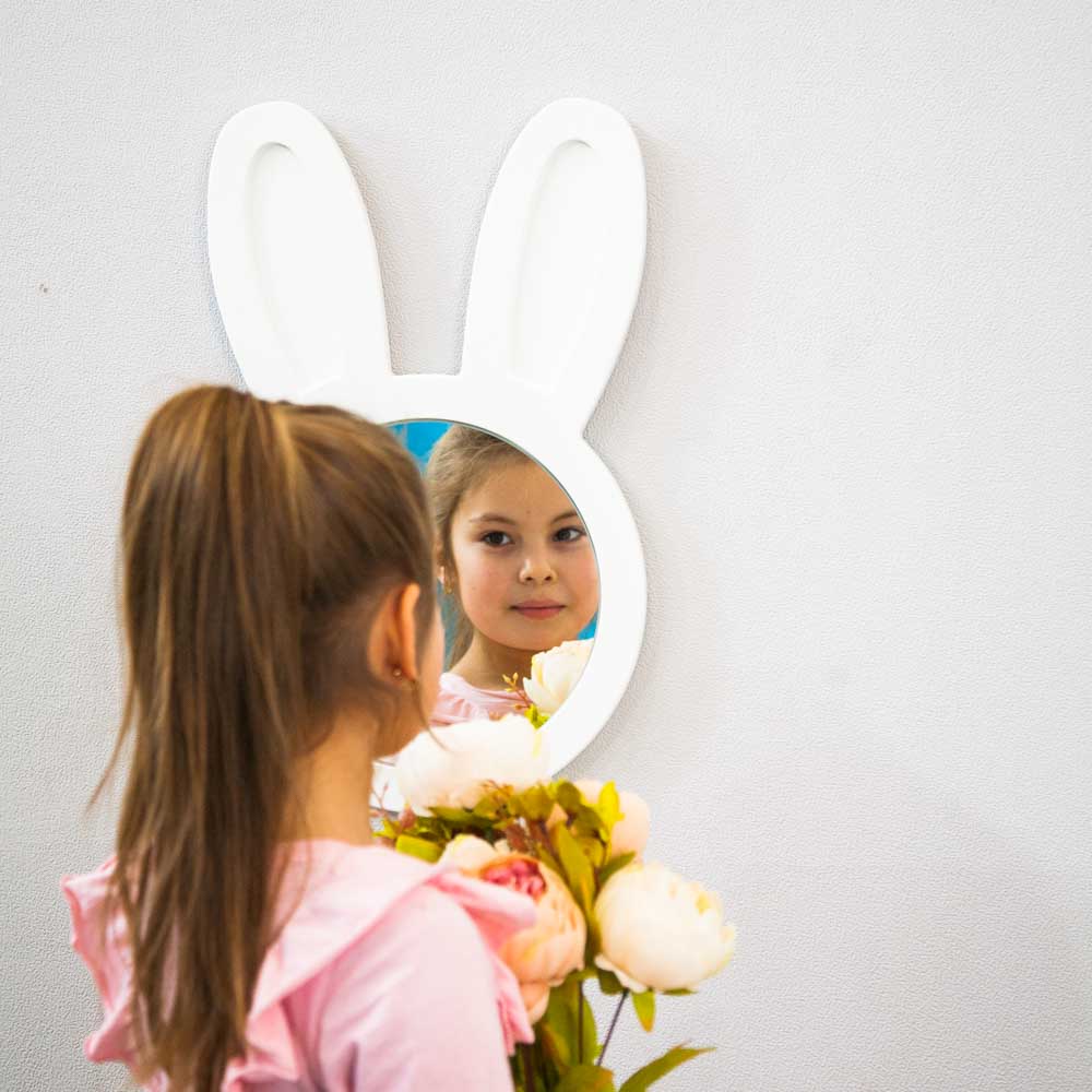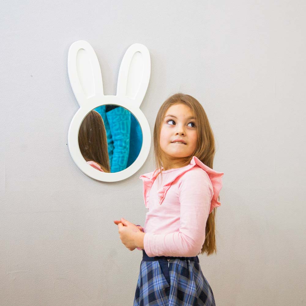 Белое зеркало в форме зайки добавит уюта и станет прекрасным украшением интерьера детской комнаты.
