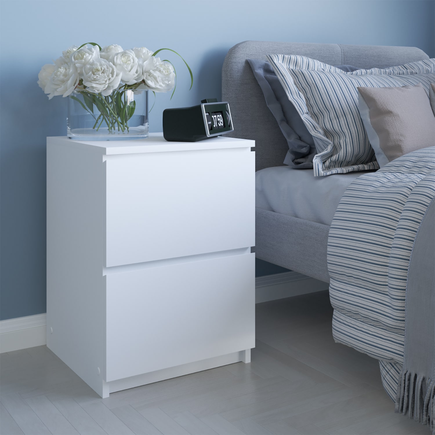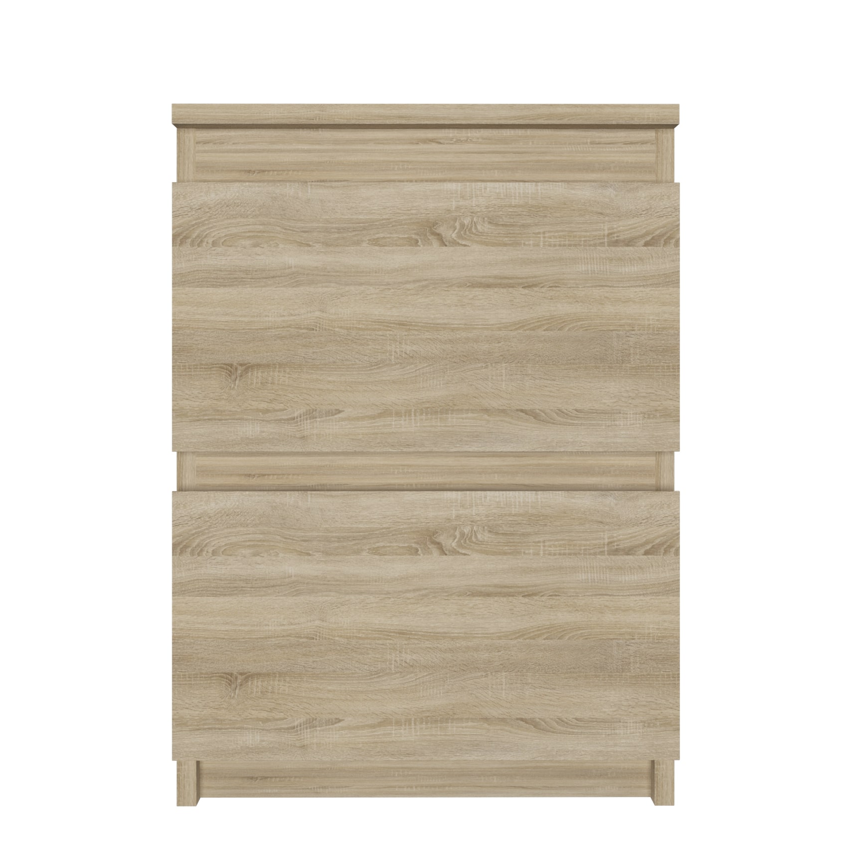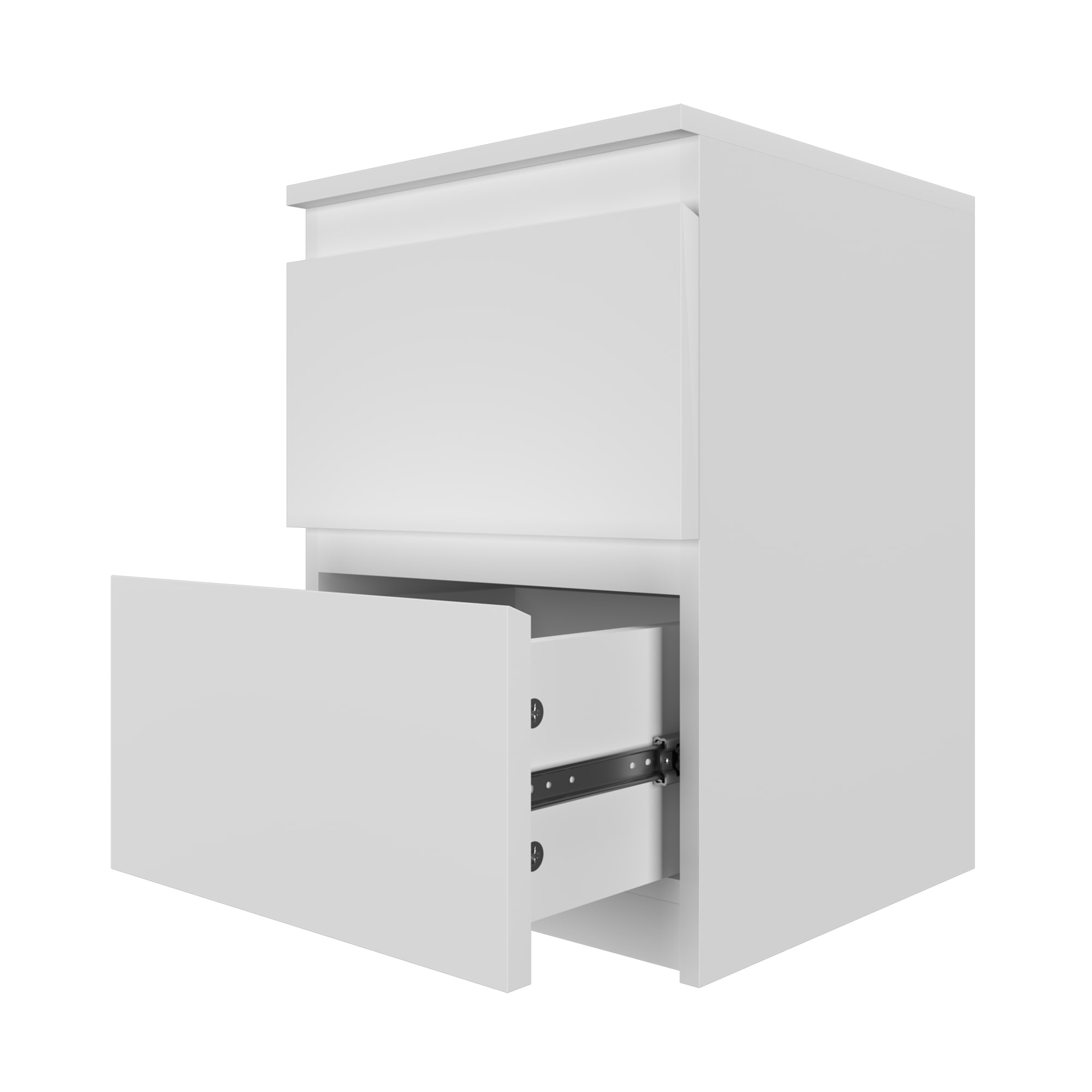 Комод оснащен двумя ящиками с шариковыми направляющими, что обеспечивает плавное и бесшумное открывание. Высота комода составляет 55 см, ширина - 40,4 см, а глубина - 38,5 см.