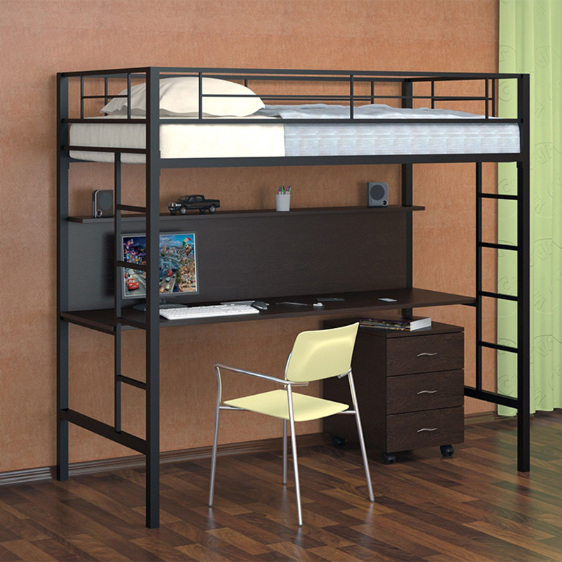 Металлическая кровать-чердак Севилья-1 способна выдерживать нагрузку до 150 кг, что делает ее подходящей как для детей, так и для взрослых. В отличие от кроватей из ЛДСП выглядит менее громоздкой. Свободную зону под кроватью можно оформить как игровую или создать рабочее место, что позволит сэкономить пространство в помещении.