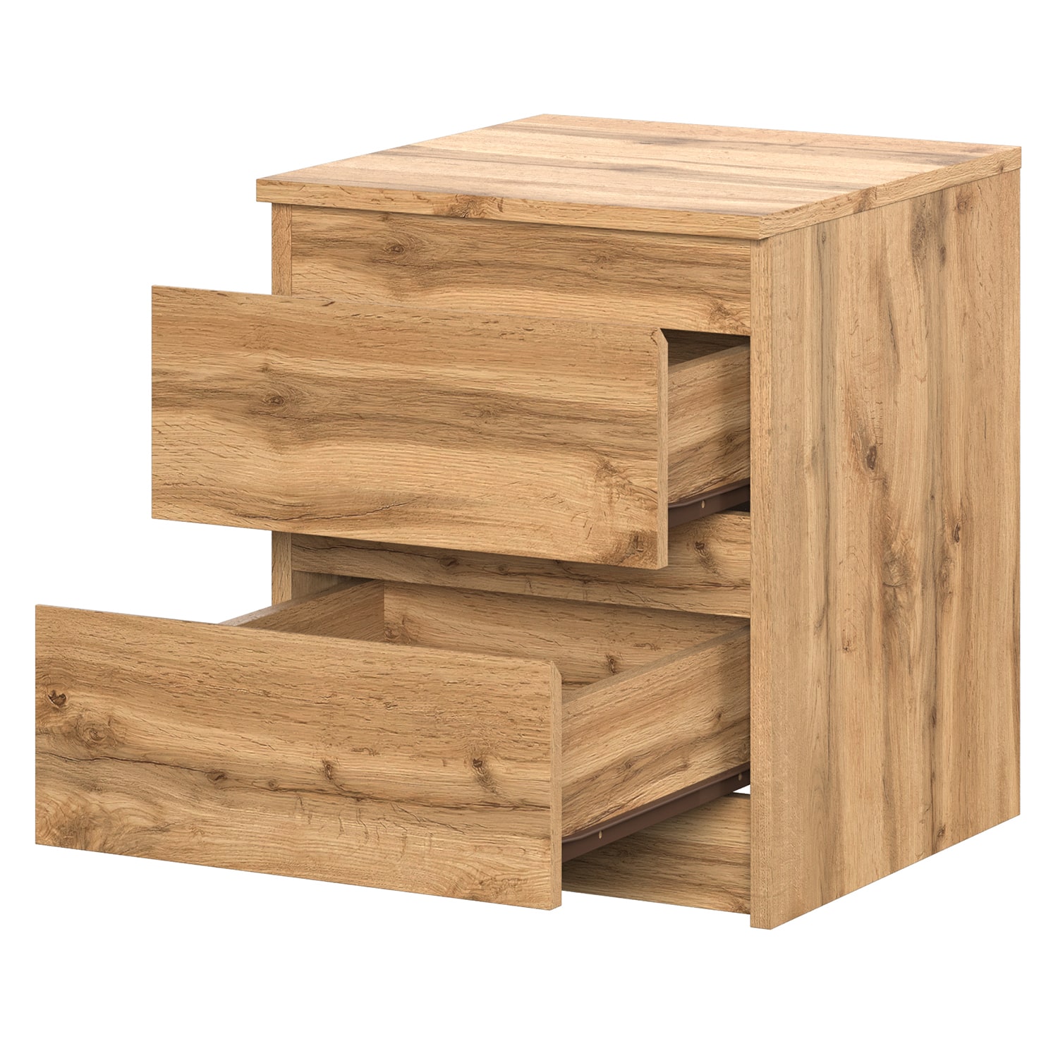 Комод имеет два вместительных ящика, что позволяет хранить различные предметы и аксессуары. Роликовые направляющие обеспечивают плавное и бесшумное открывание ящиков.