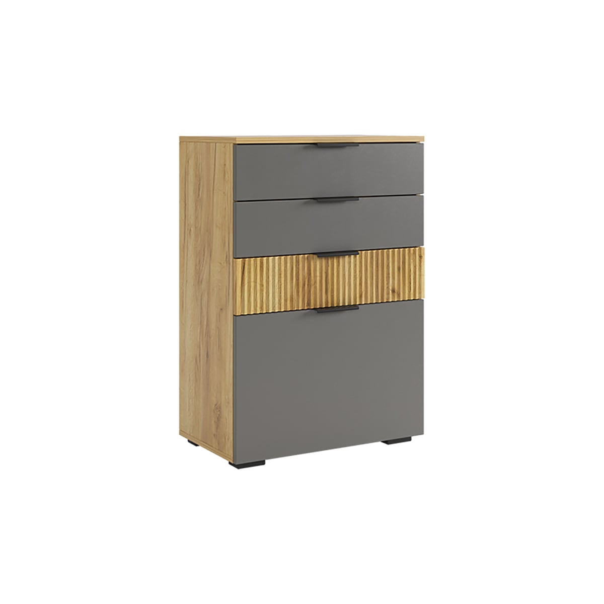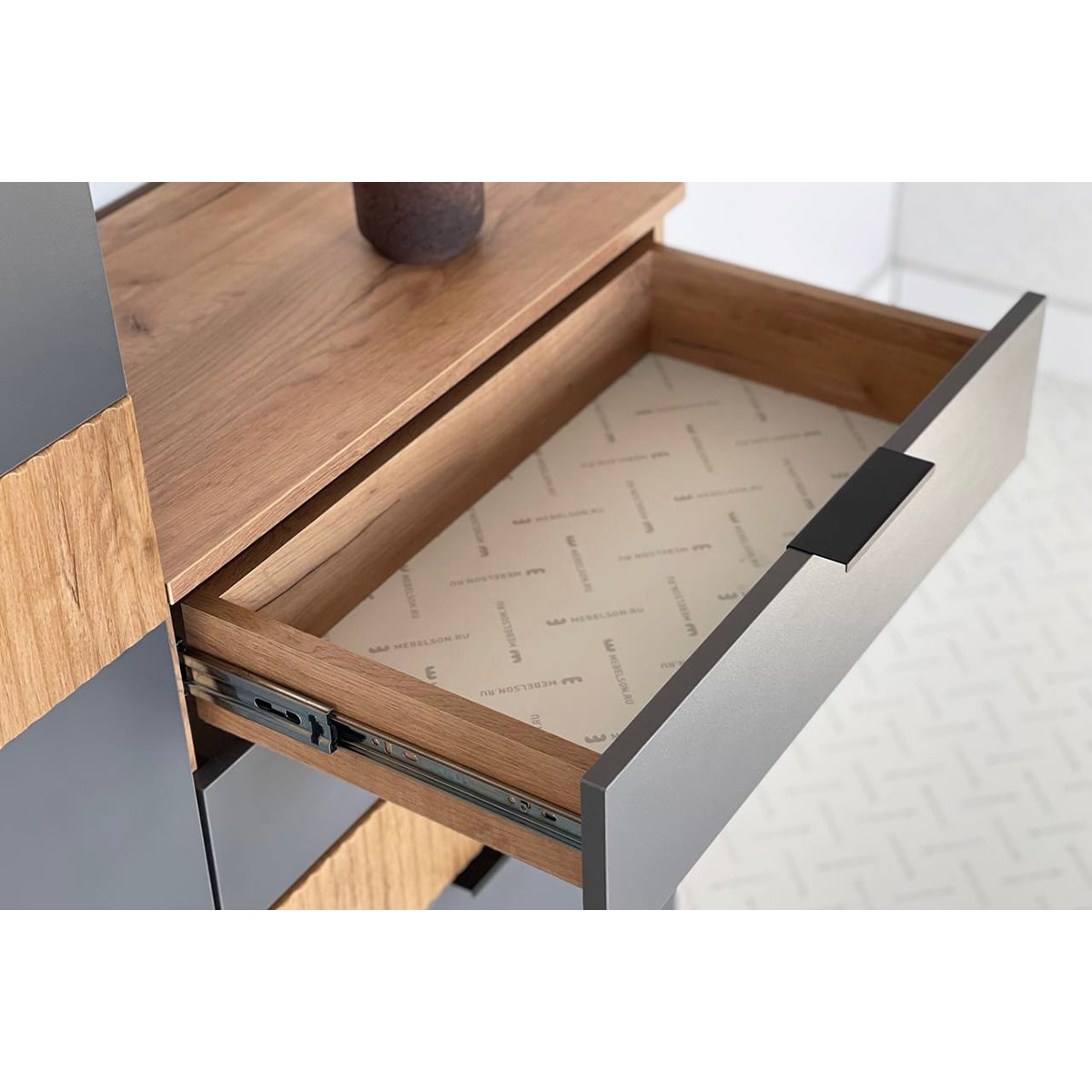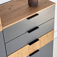 Акцентом в комоде будет МДФ фасад ящика с вертикальной фрезеровкой "Вельвет". Ящики возможно расположить в любой последовательности.