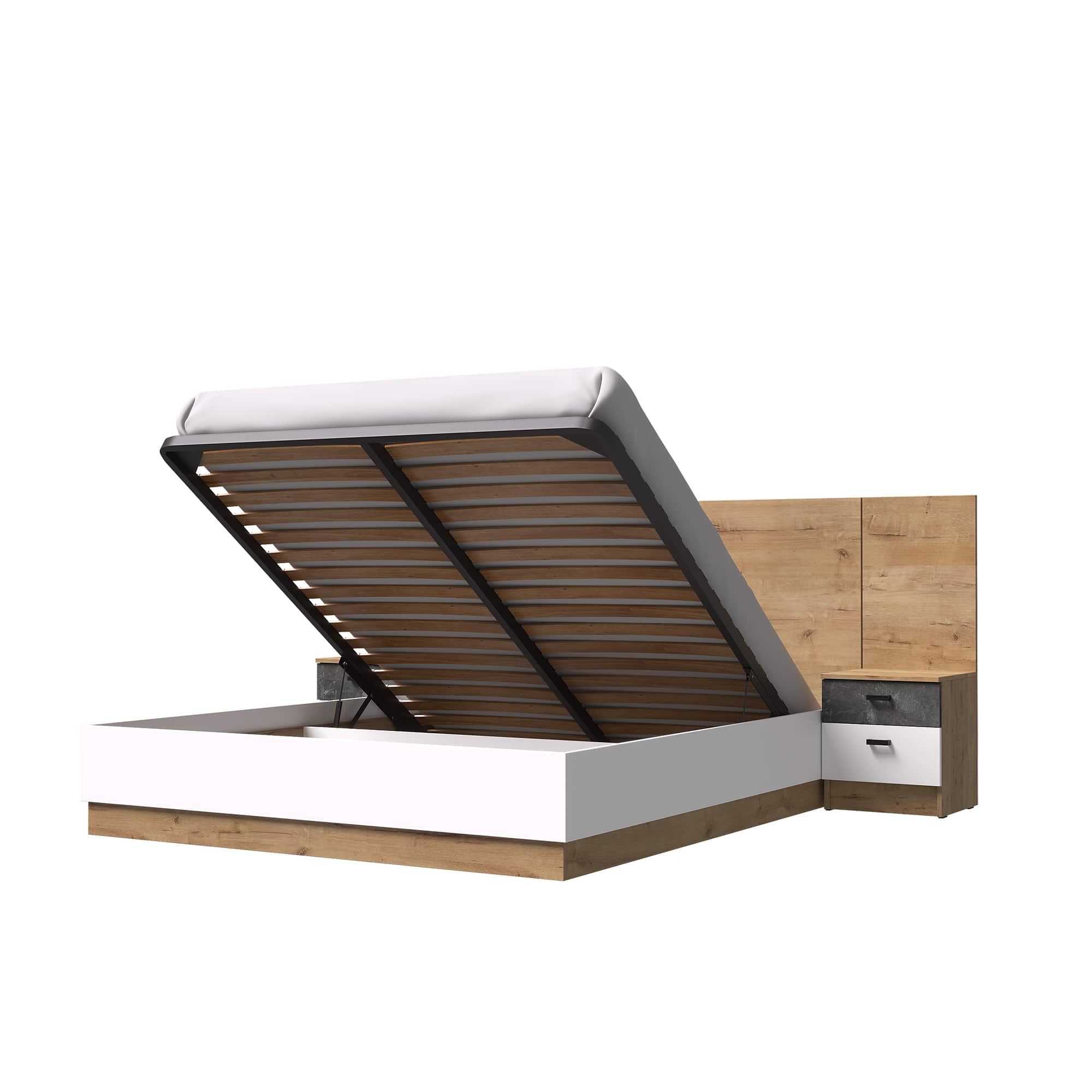 Кровать с подъемным механизмом Адель с тумбами 1600х2000 Дуб вотан-Белый гладкий