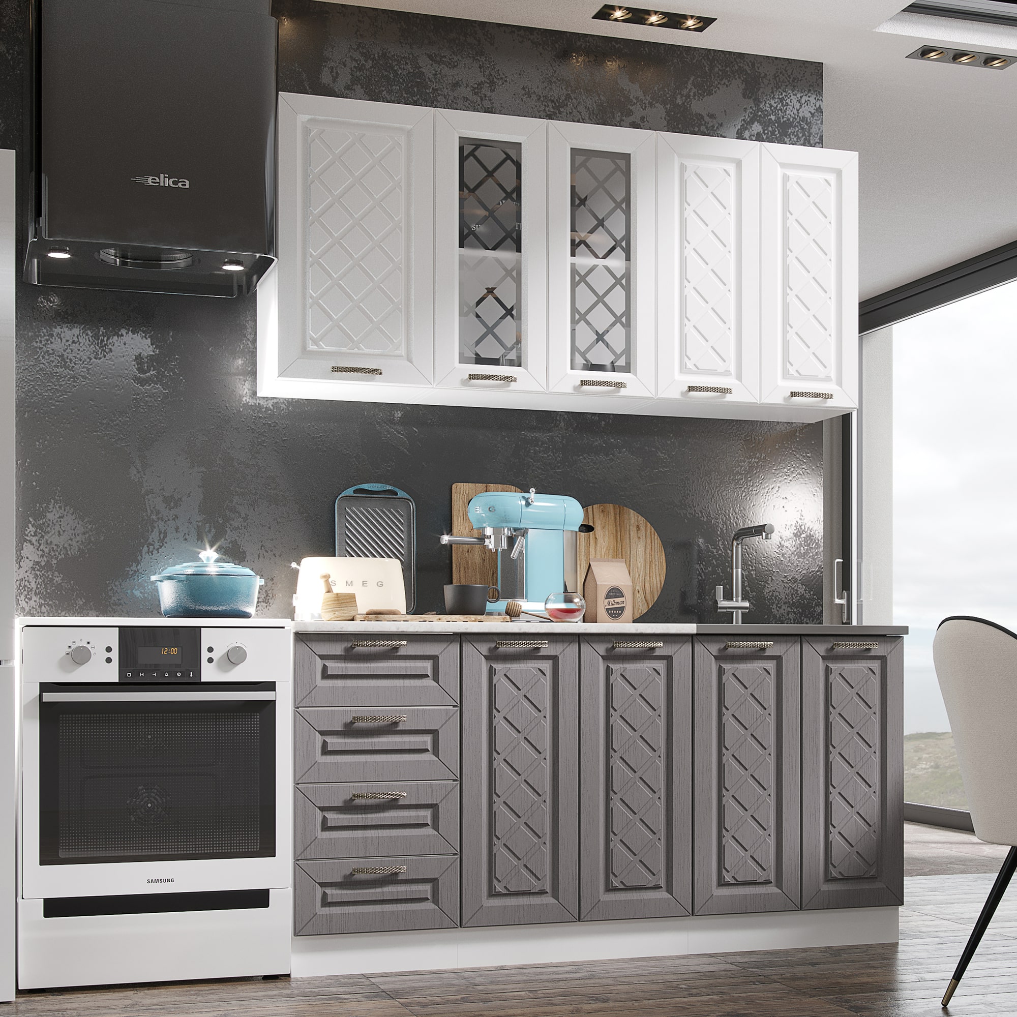 Кухня Агава 1600 Белый/Акация белая/Трюфель доступна к заказу в различных цветовых исполнениях, подходящих к любому интерьеру обеденной зоны.