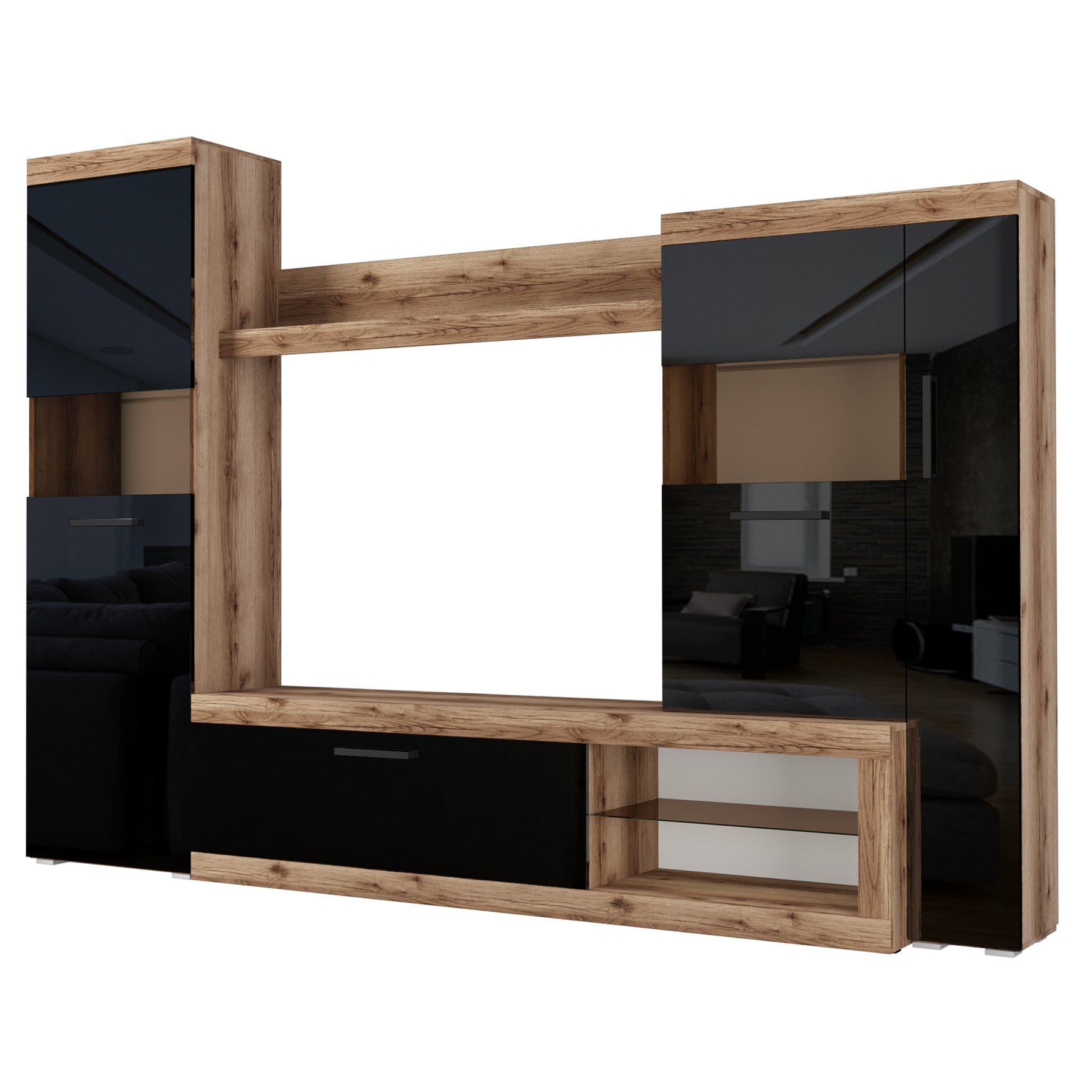 Гостиная Бастон Дуб делано/Черный глянец