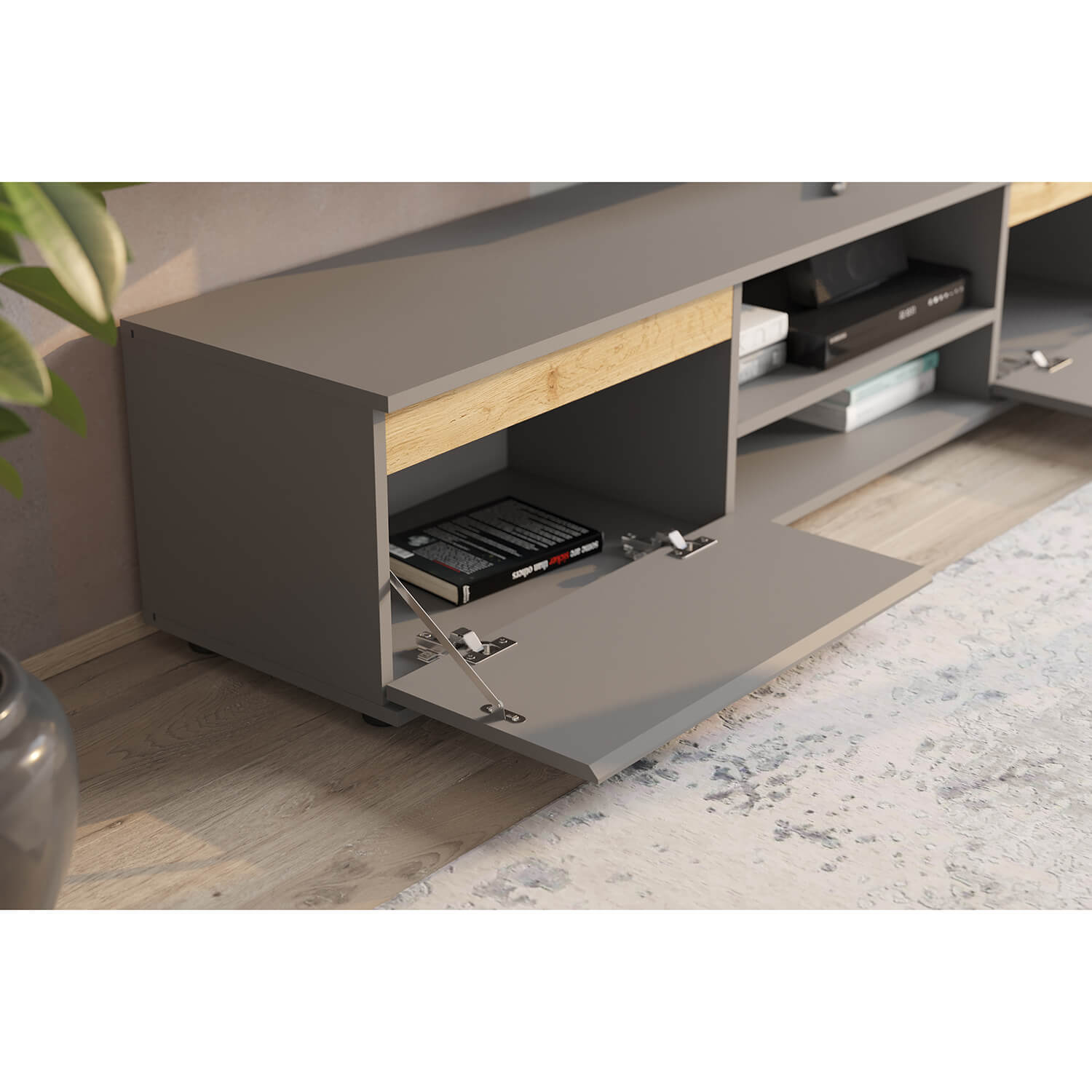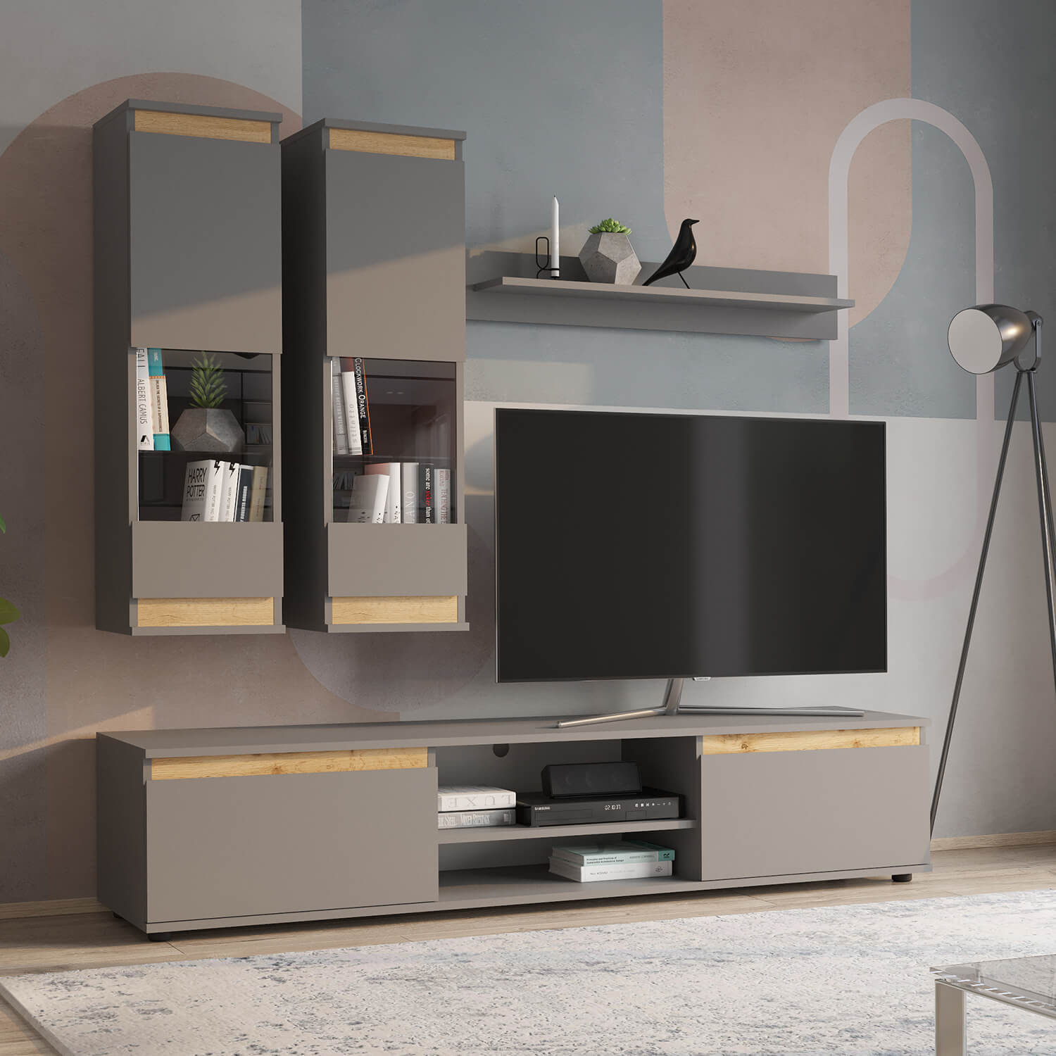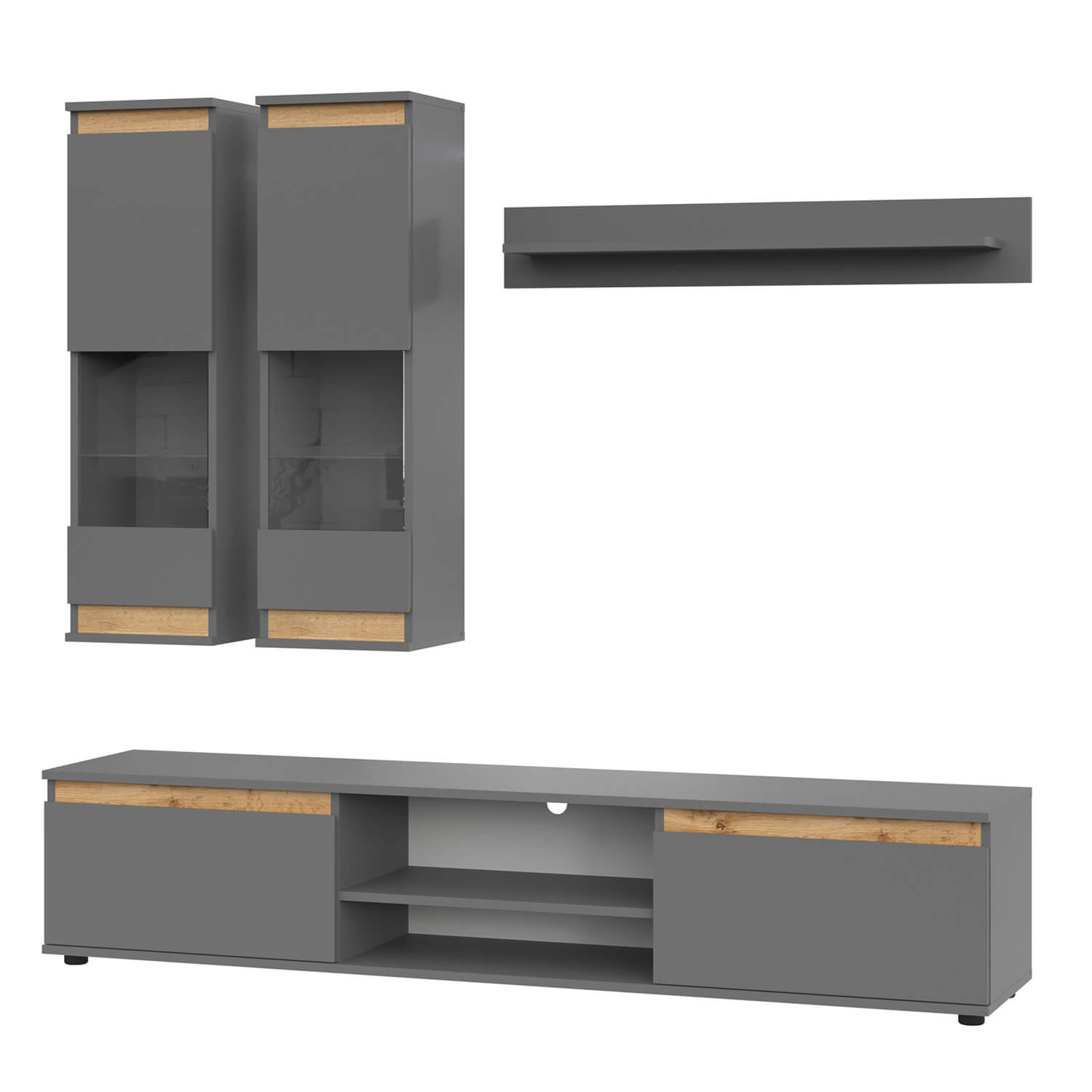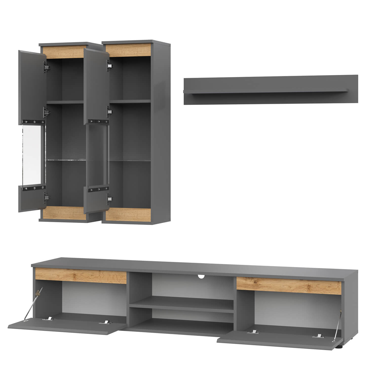 Элегантная гостиная НК BRUNO в сочетании серого фасада и благородного дуба Вотан станет истинным украшением вашего дома. Стильный дизайн создает неповторимый стиль, который органично впишется как в традиционный, так и в современный интерьер.