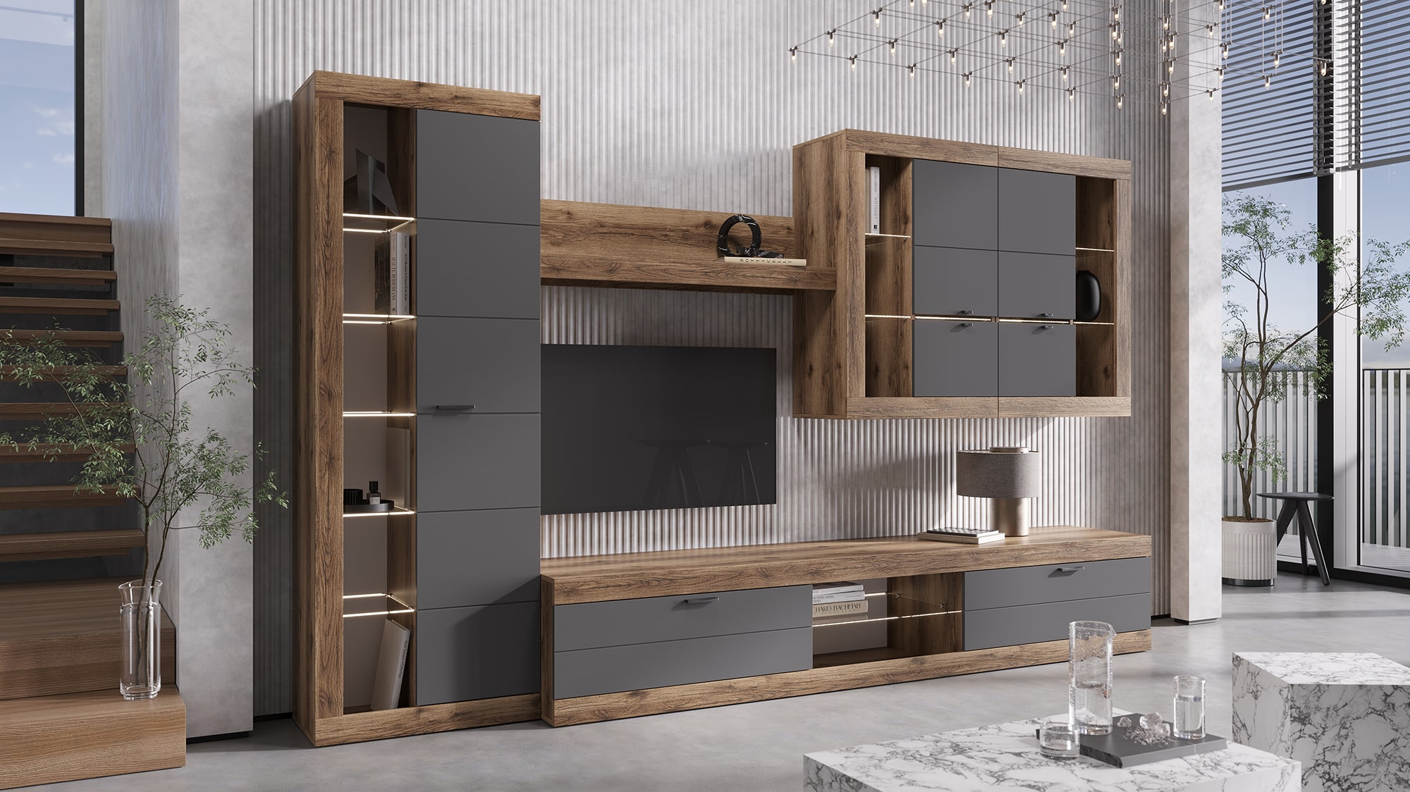 Гостиная Прага гармонично впишется в любой интерьер, а возможность подсветки создаст атмосферу комфорта.