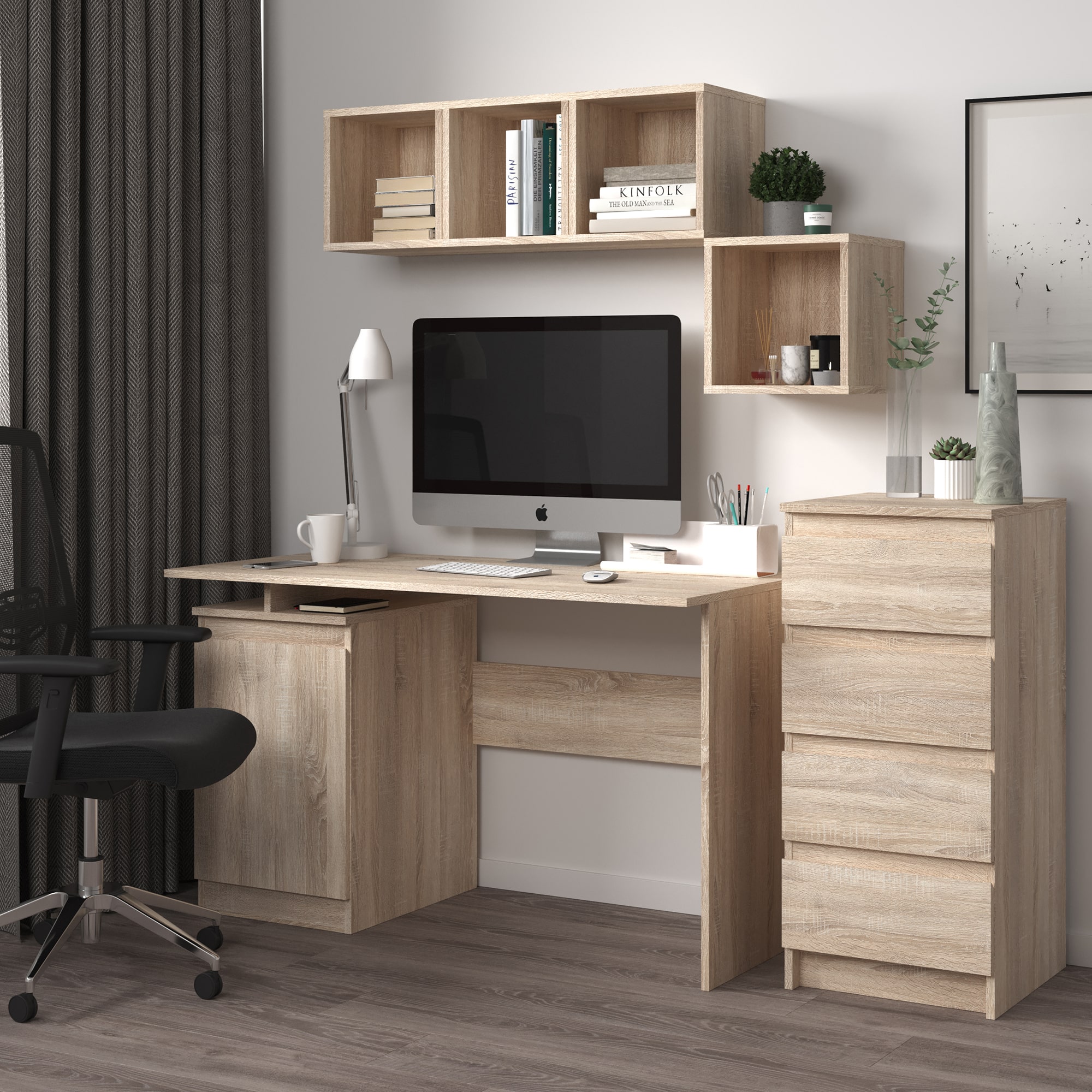Дизайн без лишних деталей - отличительная черта серии мебели STERN. Стол будет уместен в любой комнате, а удобные скошенные ручки на фасадах придают ему современный и стильный вид