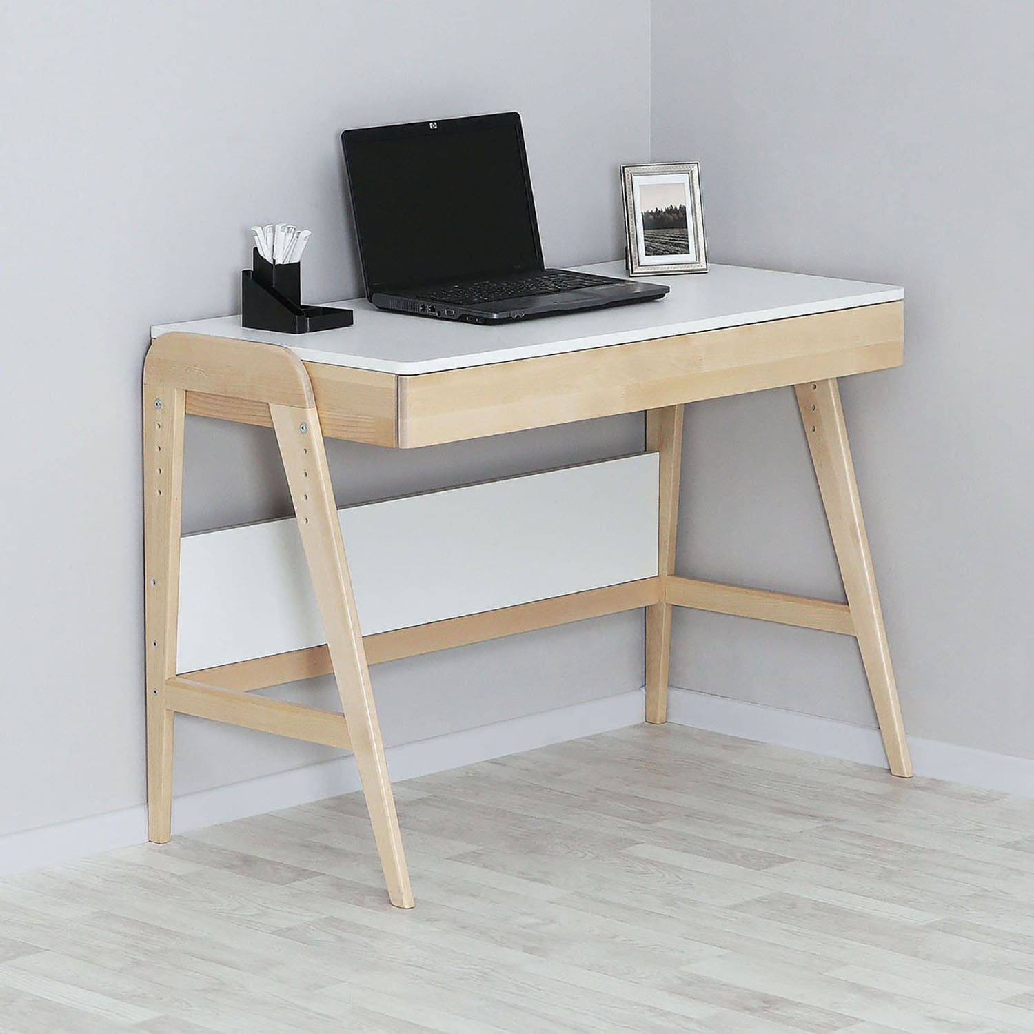 Вместительный выдвижной ящик на телескопических направляющих обеспечивает полное и плавное открывание. Это делает его удобным для хранения учебных материалов и канцелярских принадлежностей.